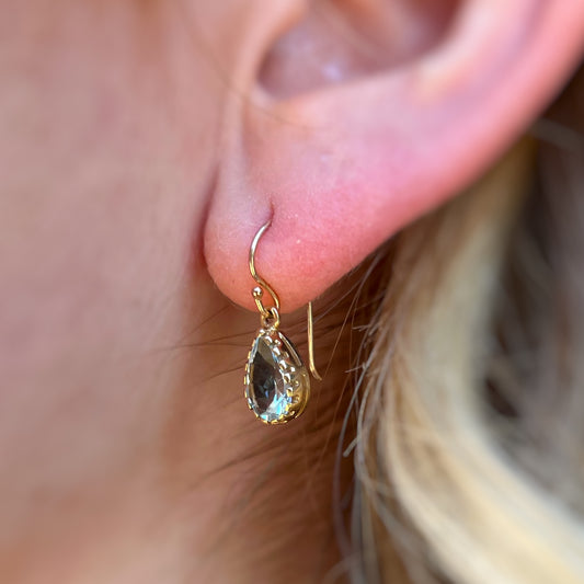 9ct Yellow Gold Pear Cut Aquamarine Drop Earrings
