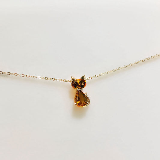 Dainty 9ct Yellow Gold Citrine Ginger Cat Necklace