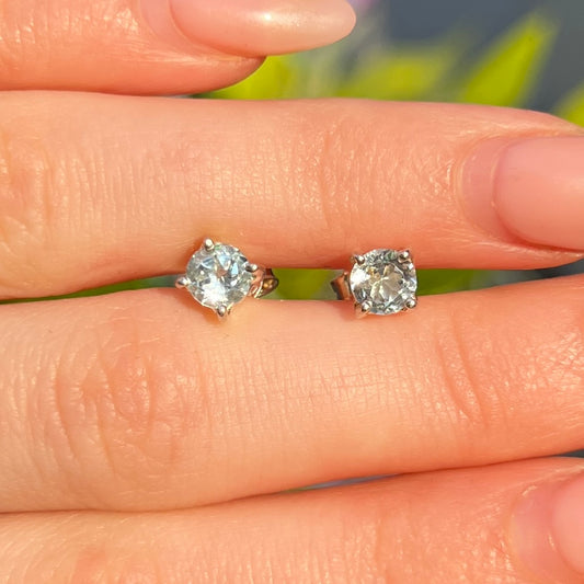 Sterling Silver Blue Topaz Sun Design Stud Earrings
