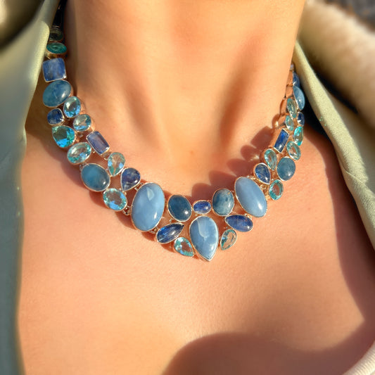 Blue Topaz, Kyanite & Owhyee Opal Chunky Sterling Silver Statement Collar Necklace