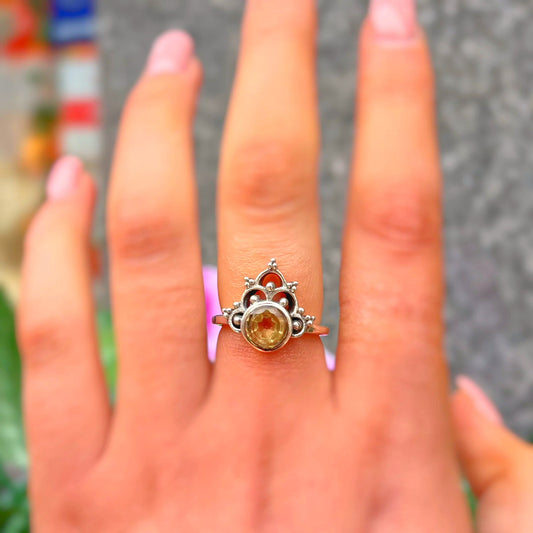 Sterling Silver Boho Smoky Topaz Ring - size O