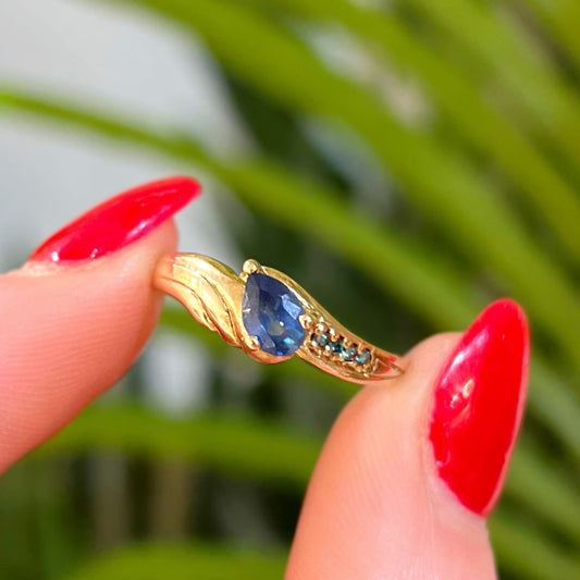 Vintage 9ct Yellow Gold Edwardian Inspired 5 Stone Sapphire Ring - Size Q