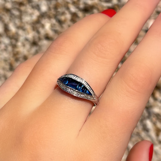 Platinum Sapphire and Diamond Ring - Size M ½
