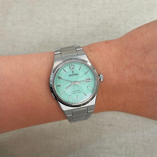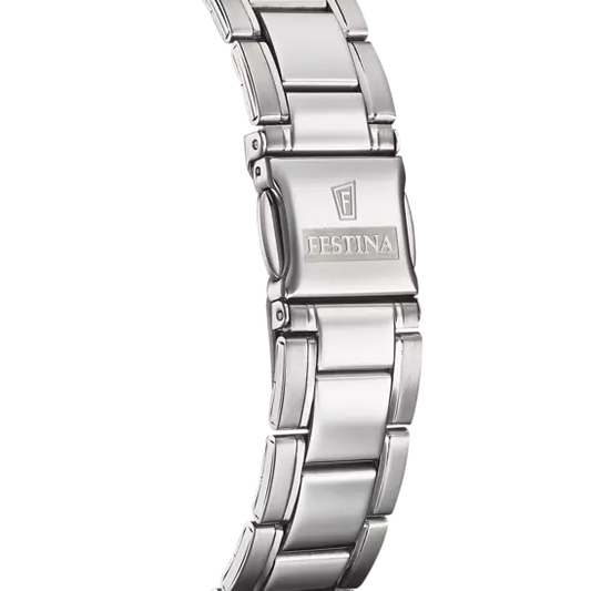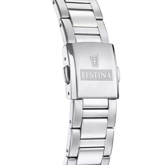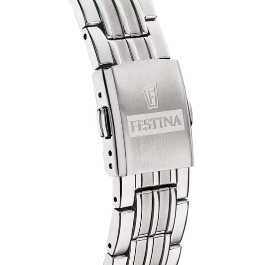 Gents Festina Swiss Silver Steel Black Dial Watch