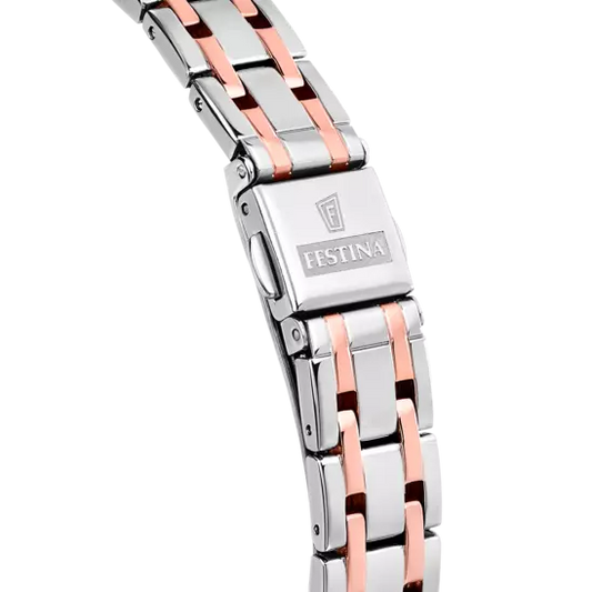 Ladies Festina Boyfrind Rose Gold & Silver Two-Tone Steel White Dial Watch
