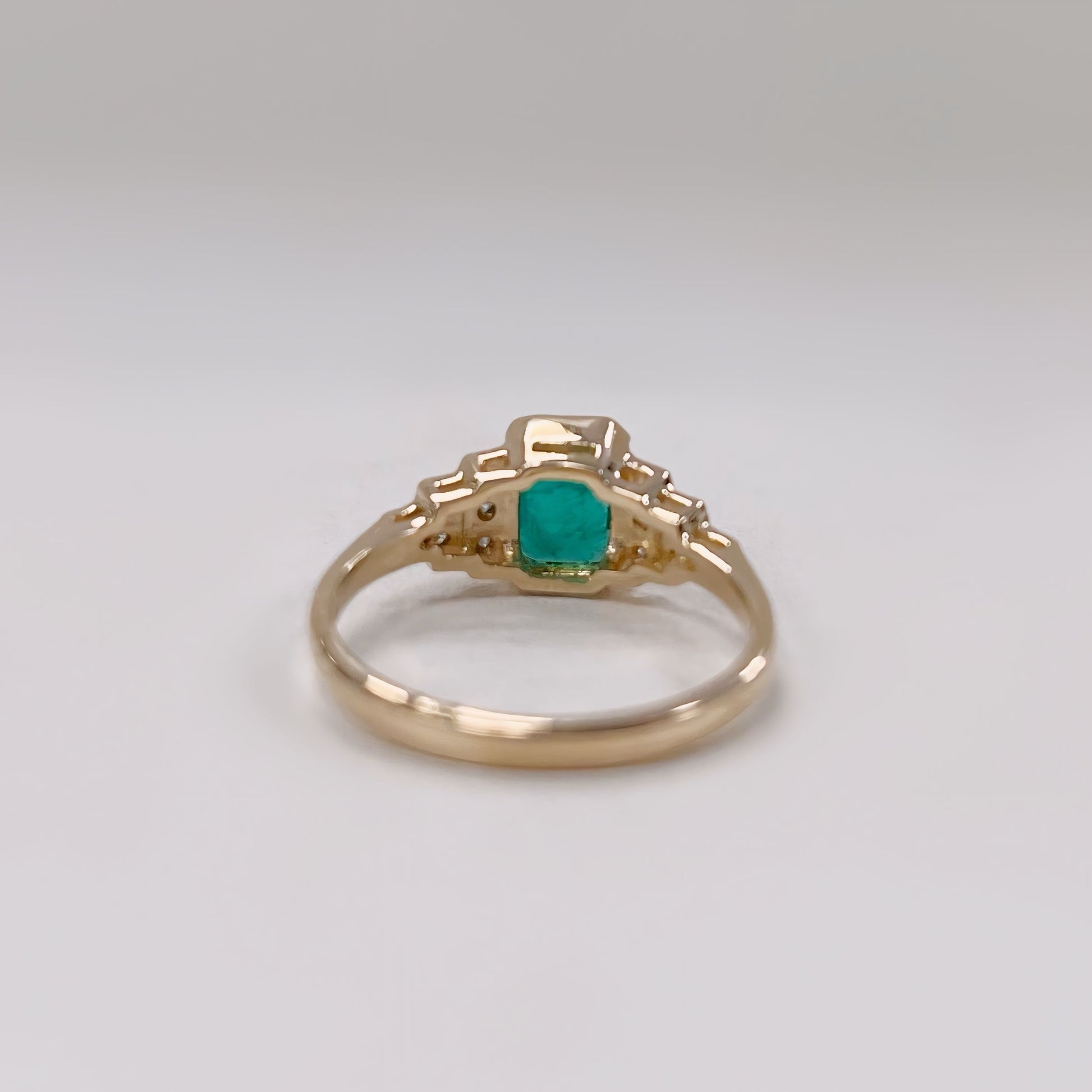 9ct Yellow Gold Art Deco Inspired Emerald and Diamond Ring - Size N ½