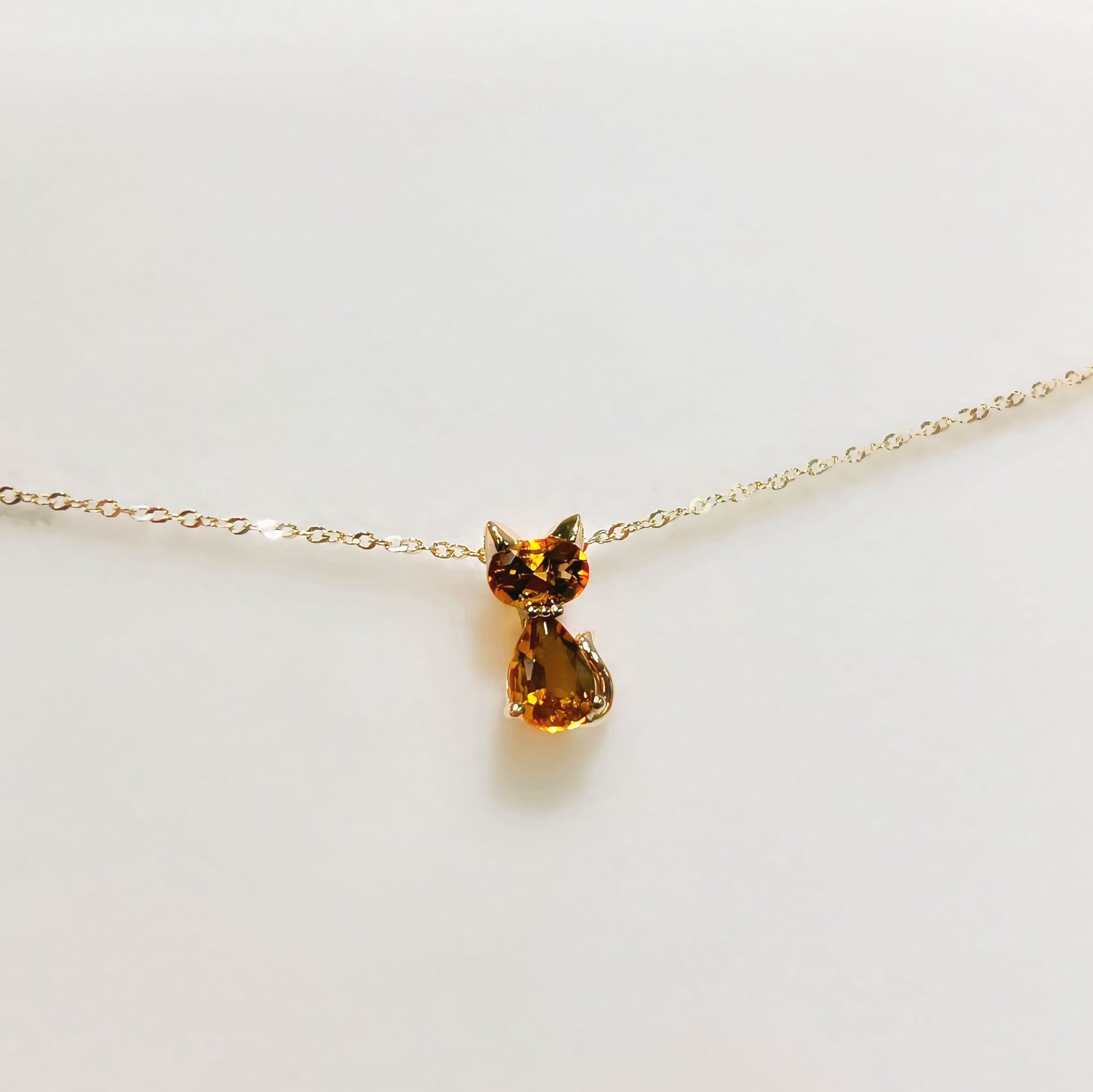 Are you a cat lover? This is the necklace for you! Featuring a cute little kitty cat crafted from 9ct yellow gold and golden Madeira citrine. Think ginger tabby cat, and it needs a loving home...