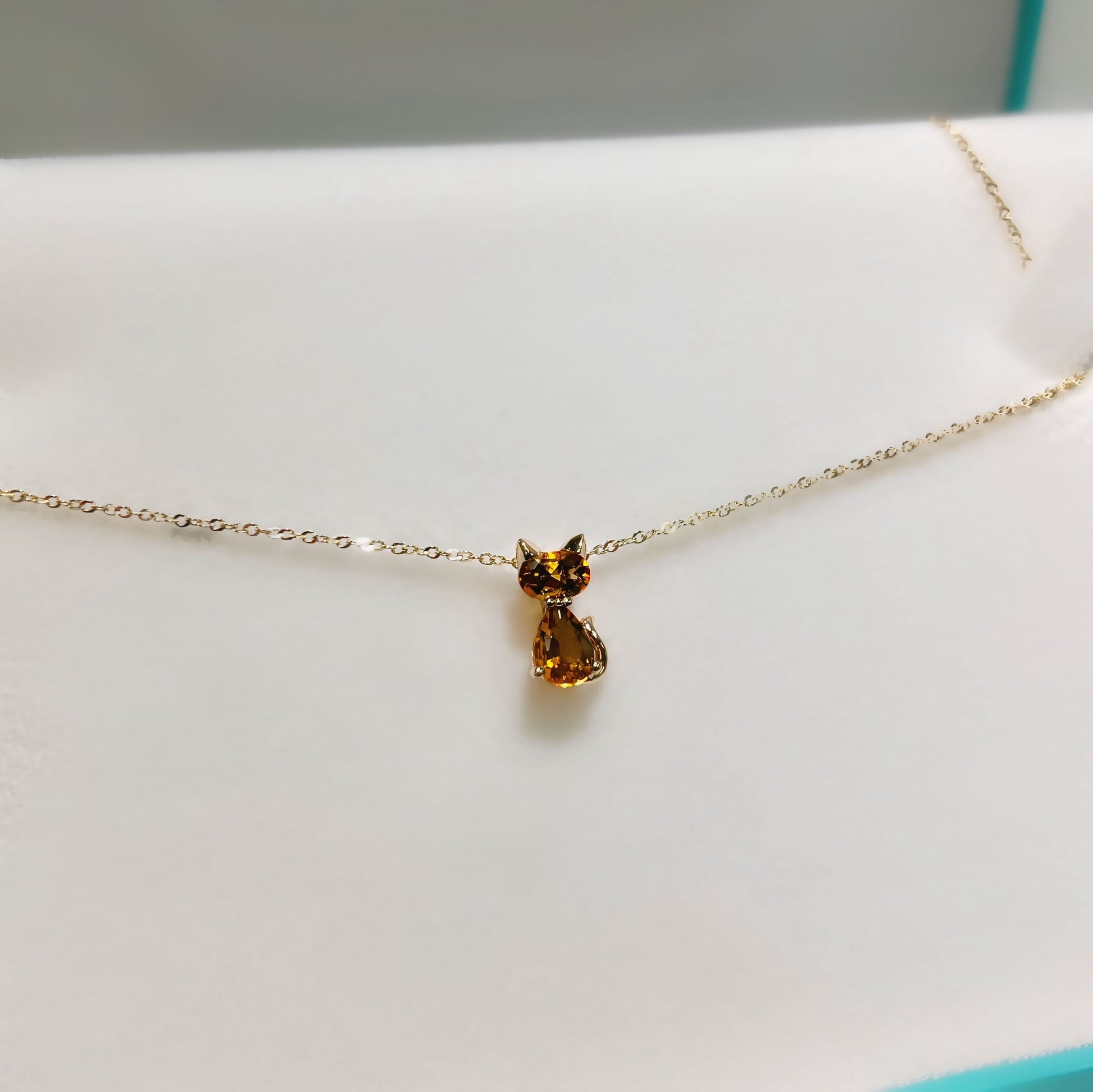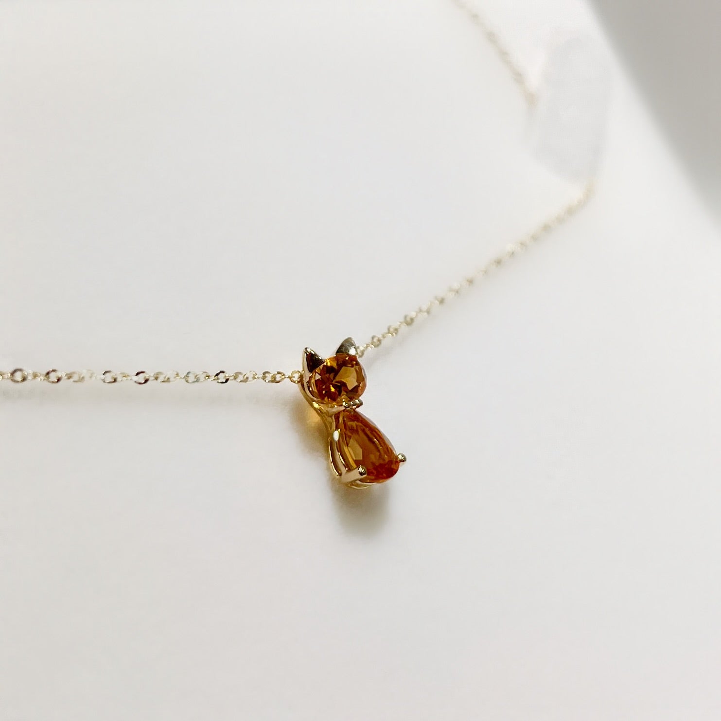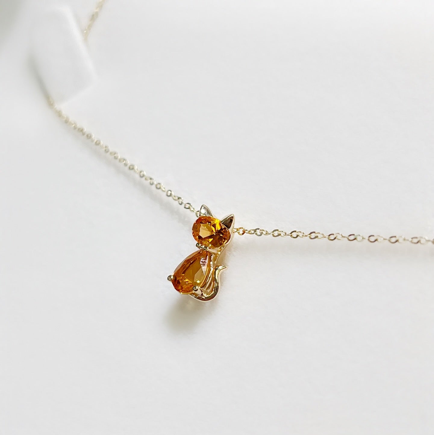 Dainty 9ct Yellow Gold Citrine Ginger Cat Necklace