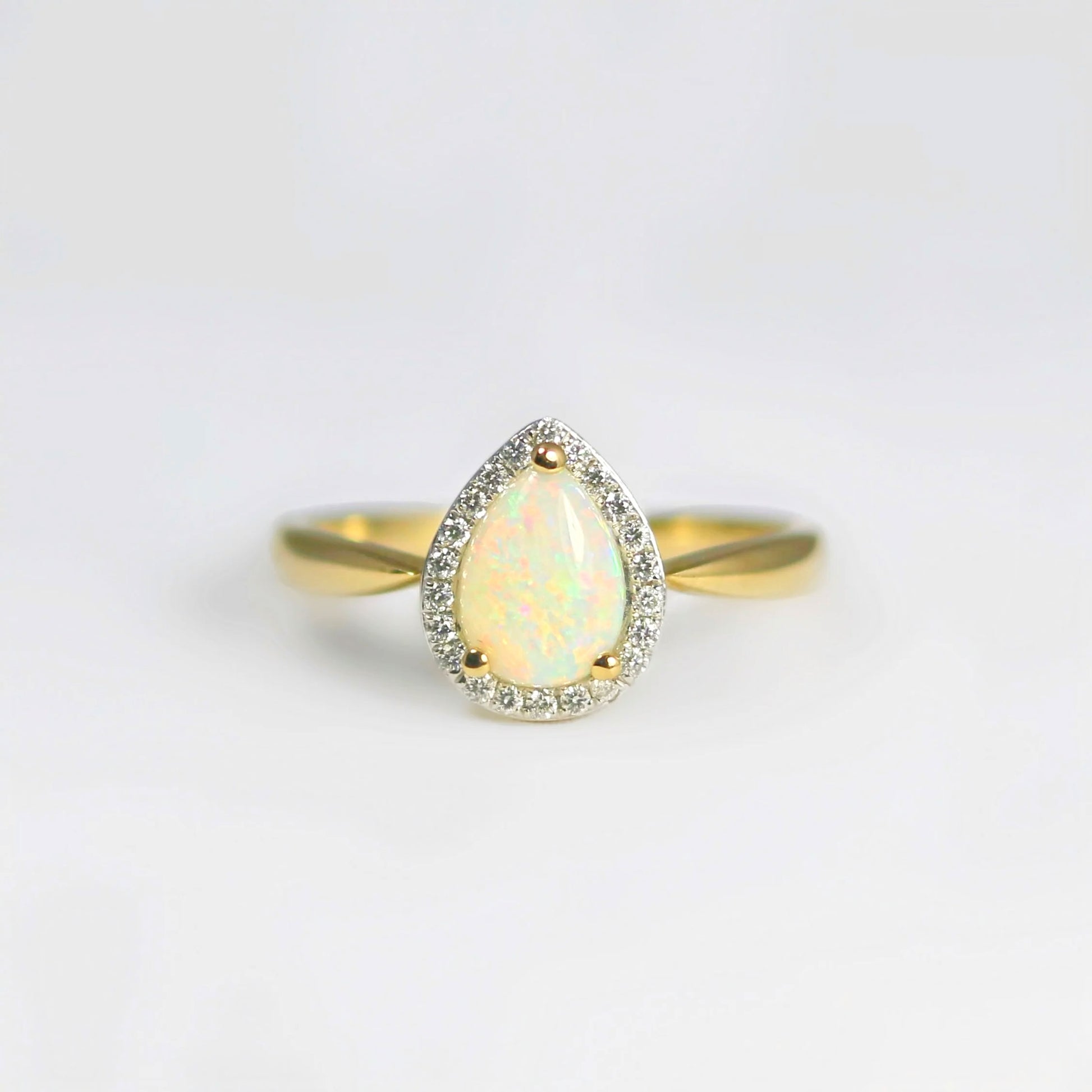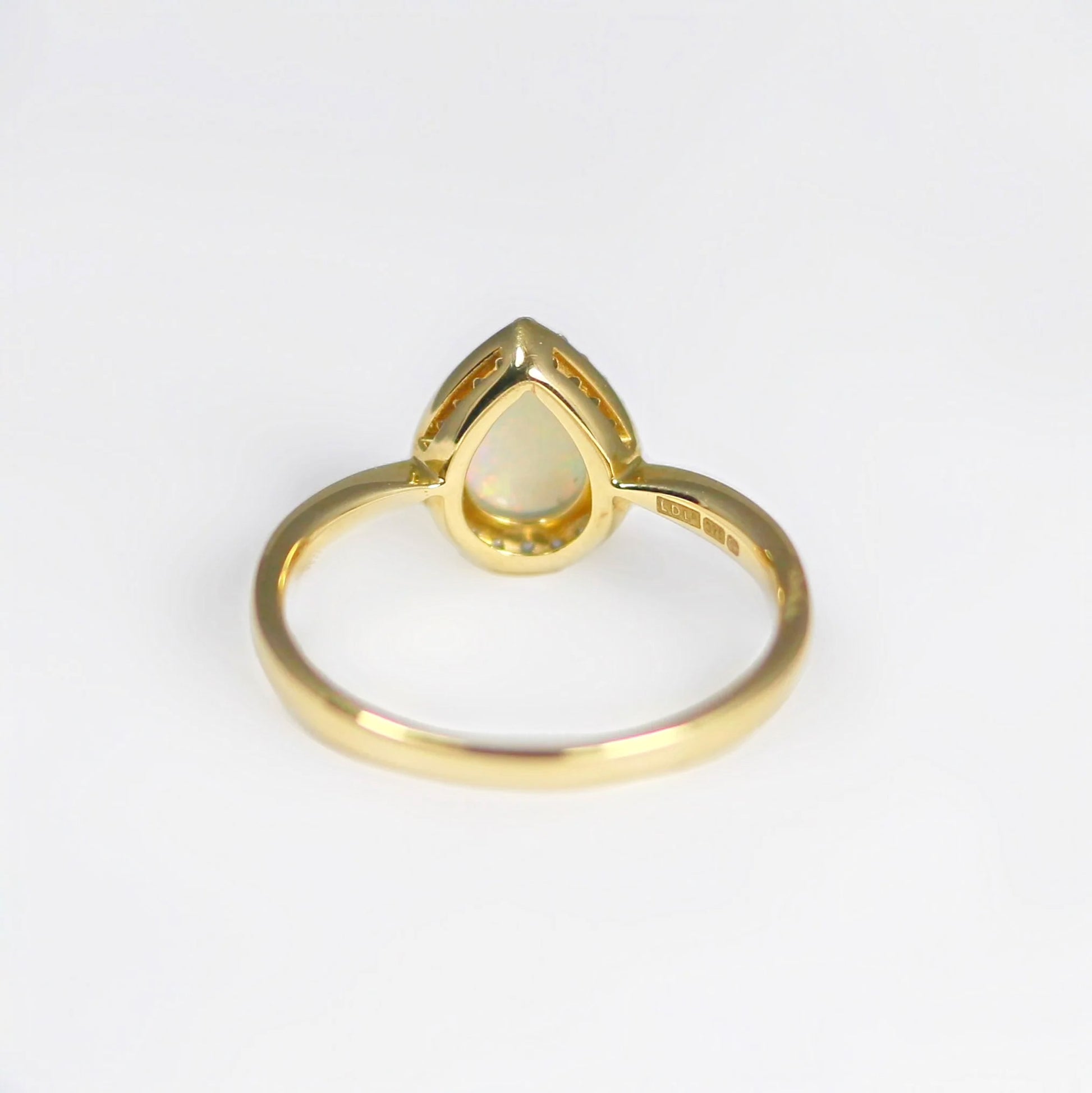 Elegant 9ct Yellow Gold Opal and Diamond Pear Shaped Halo Ring - Size N ½