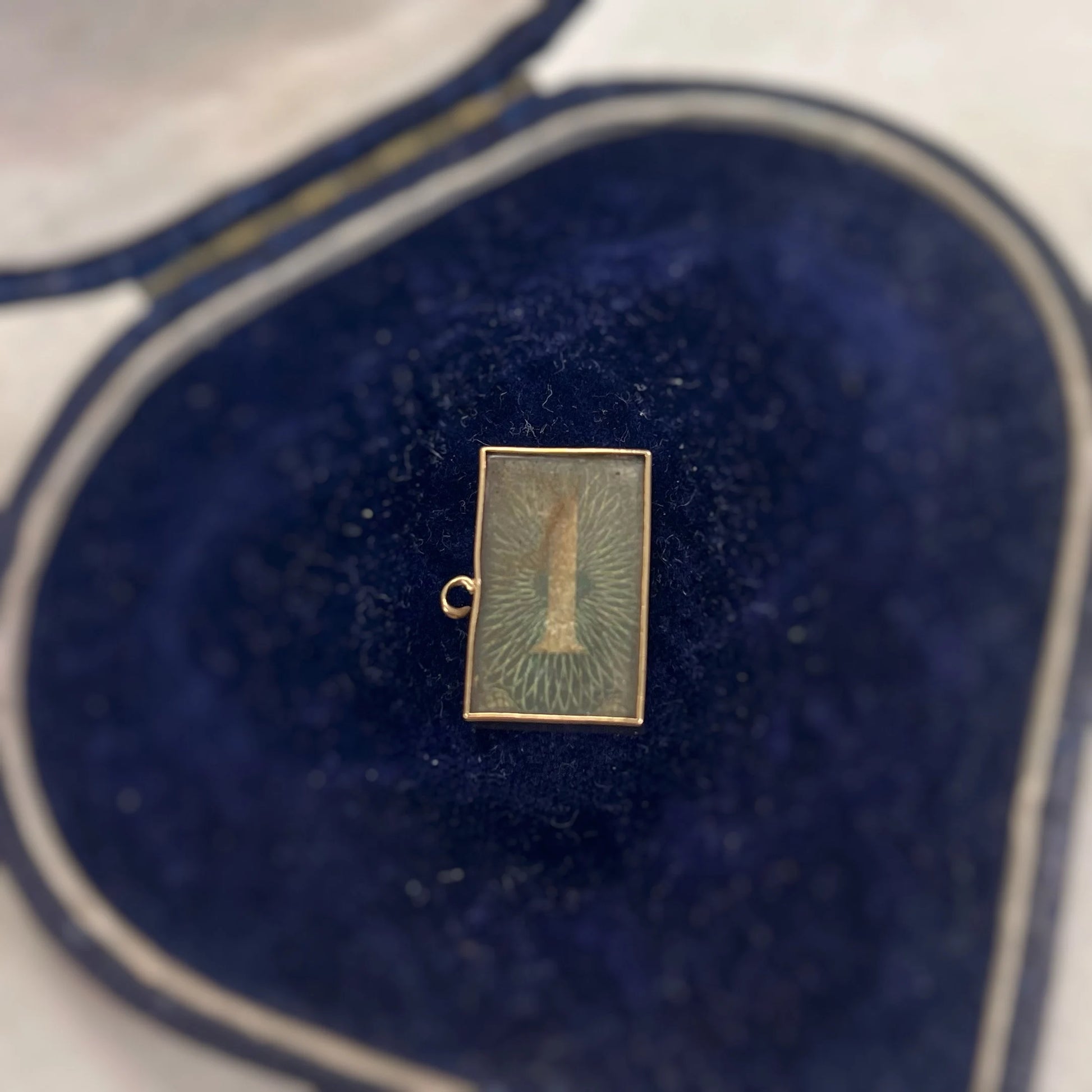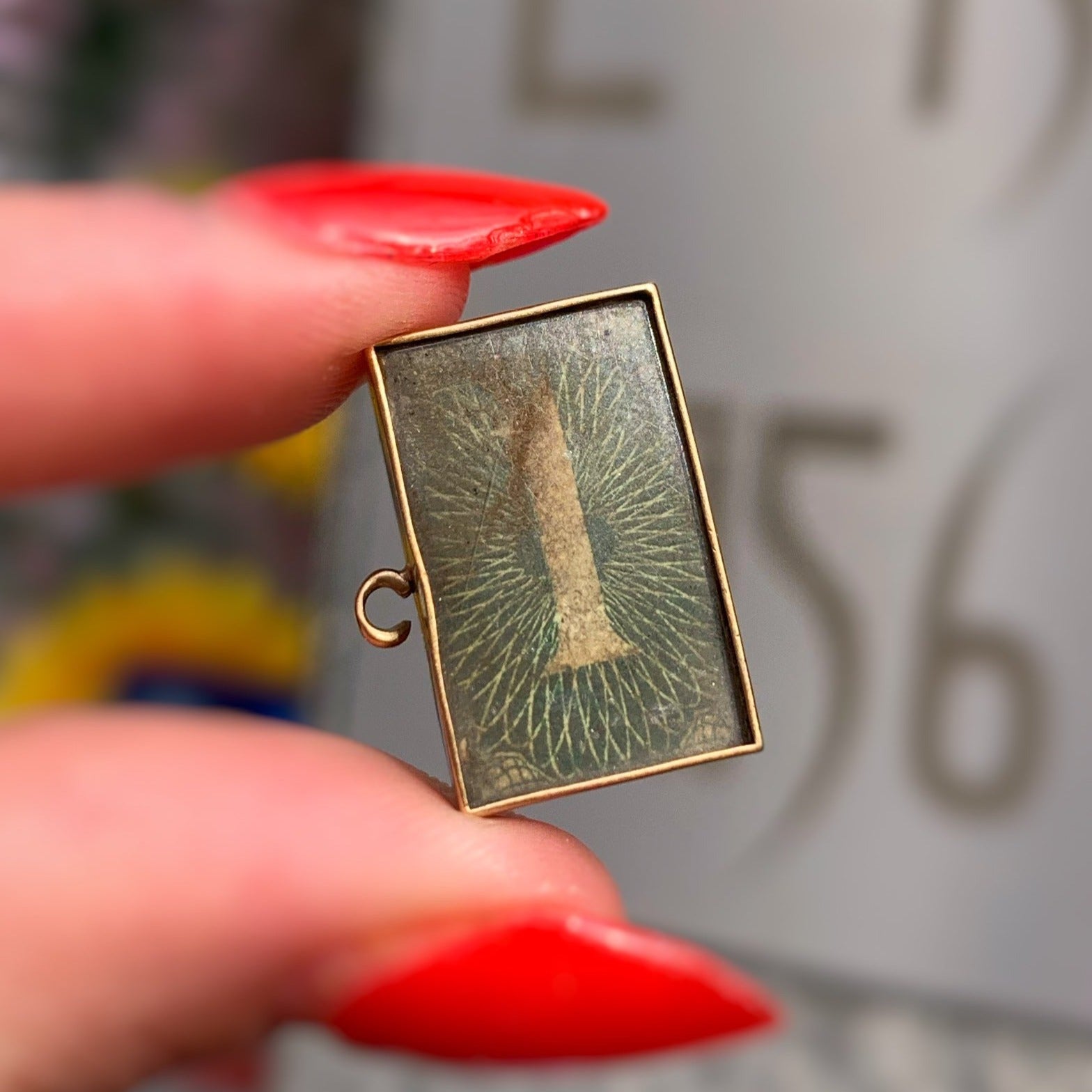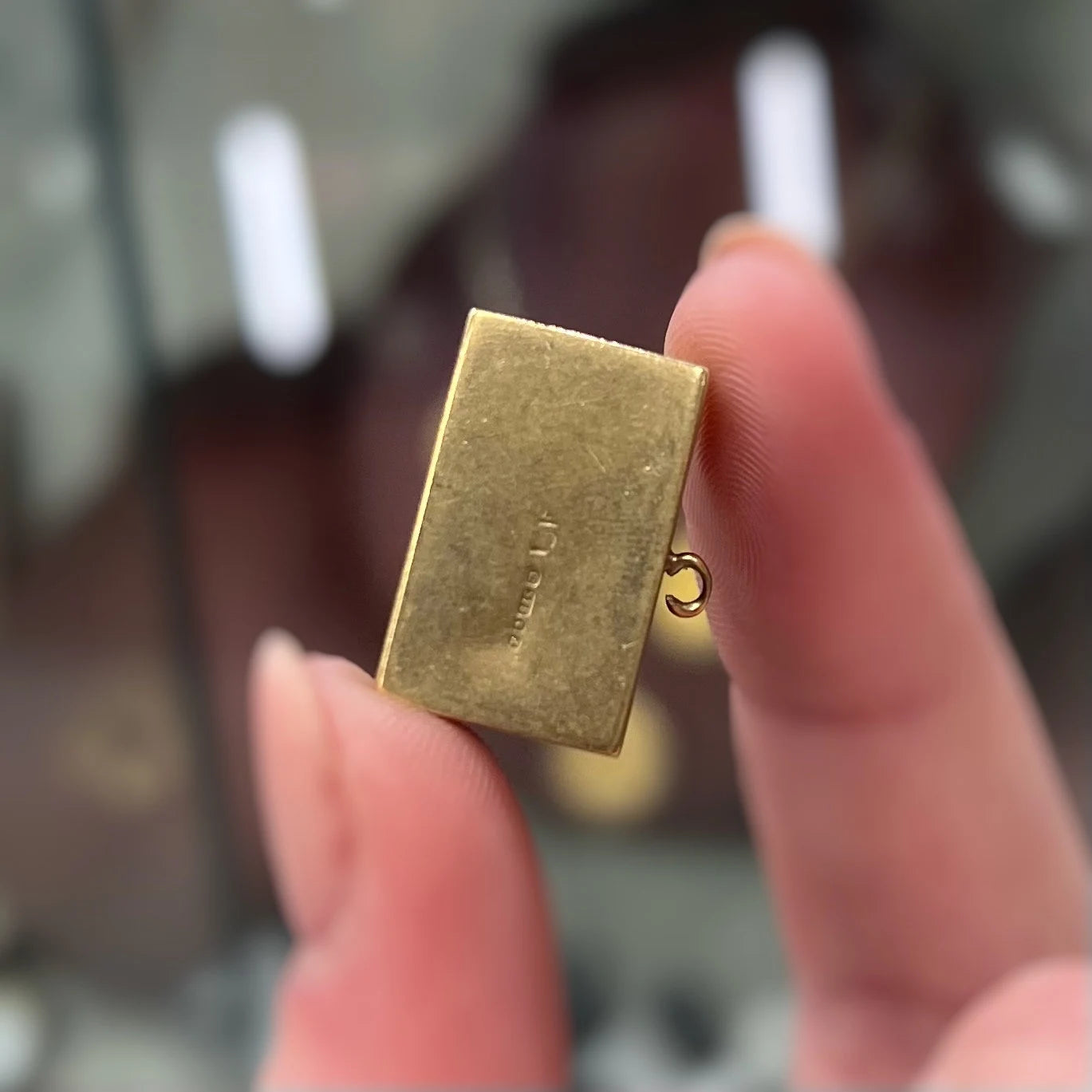 This vintage 9ct gold charm holds a folded one-pound note. The note can be seen through the front of the design behind a clear protective cover and it is hallmarked with 375 as well as the assay mark for London.