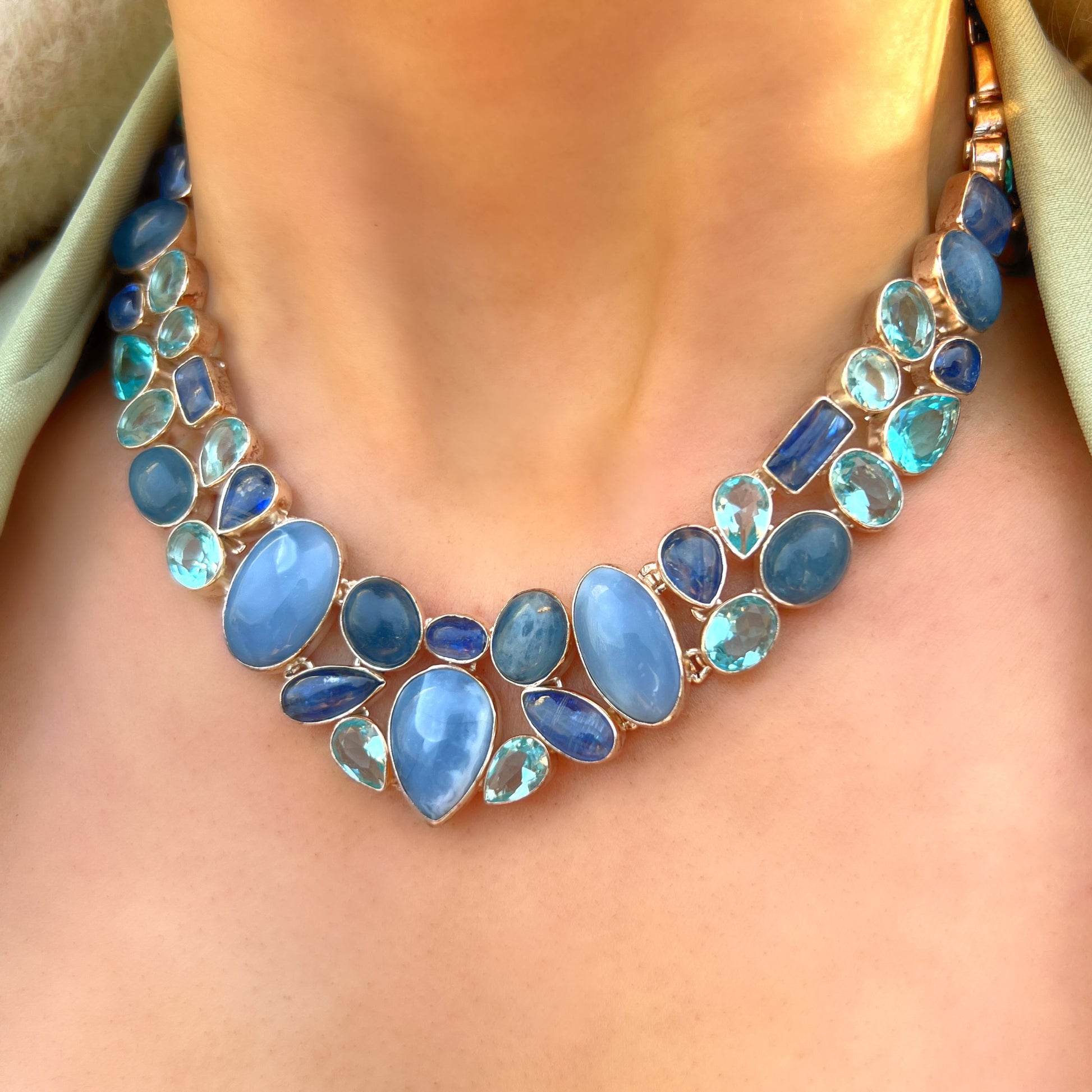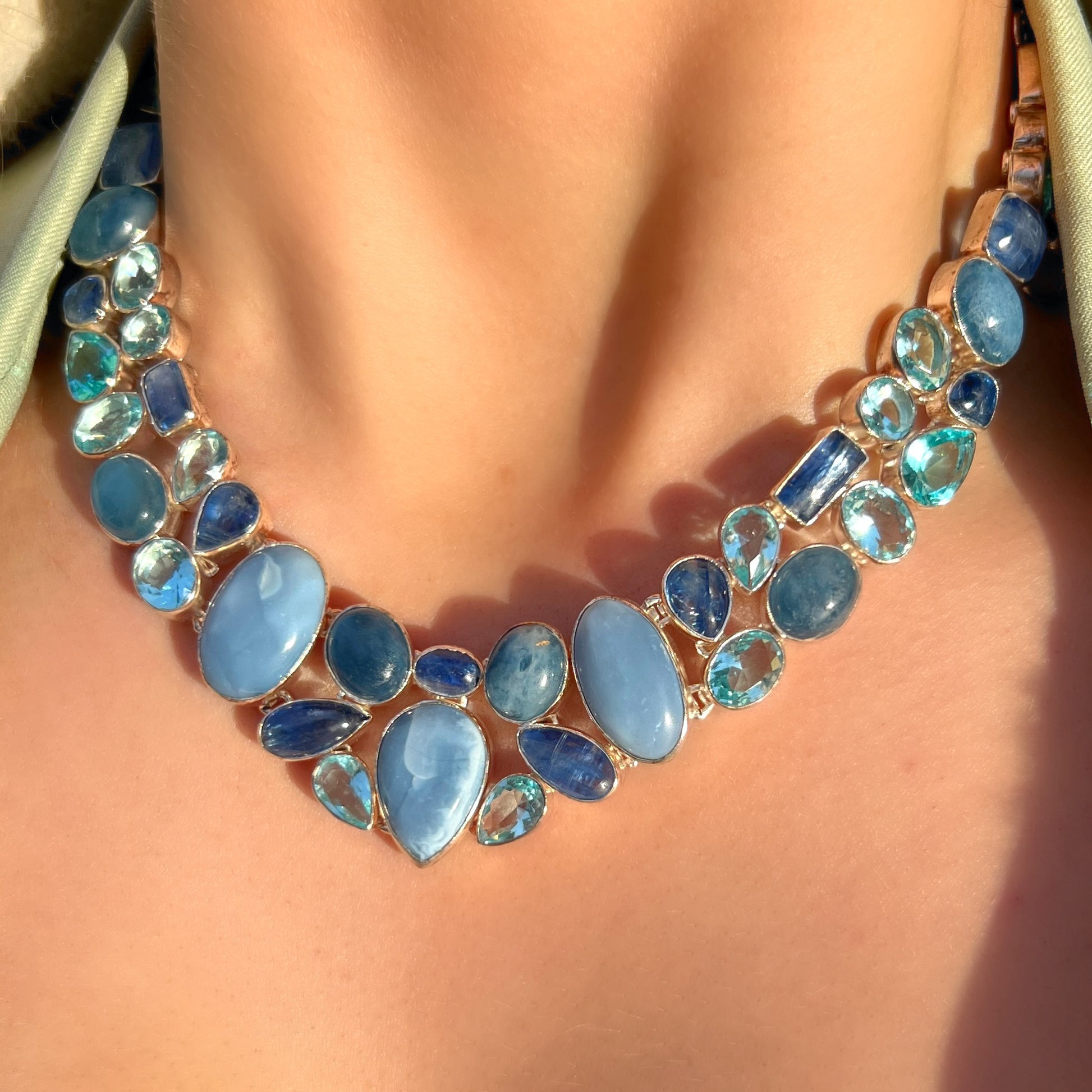 Blue Topaz, Kyanite & Owhyee Opal Chunky Sterling Silver Statement Collar Necklace