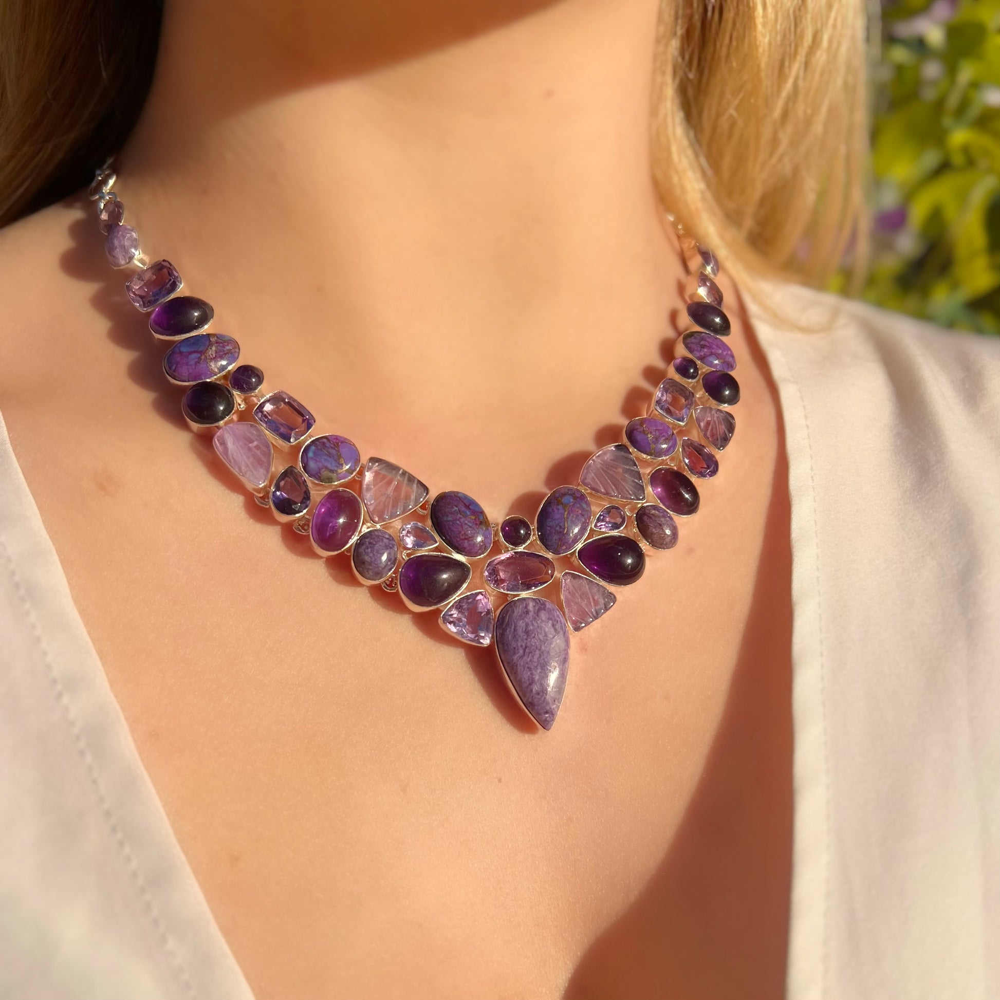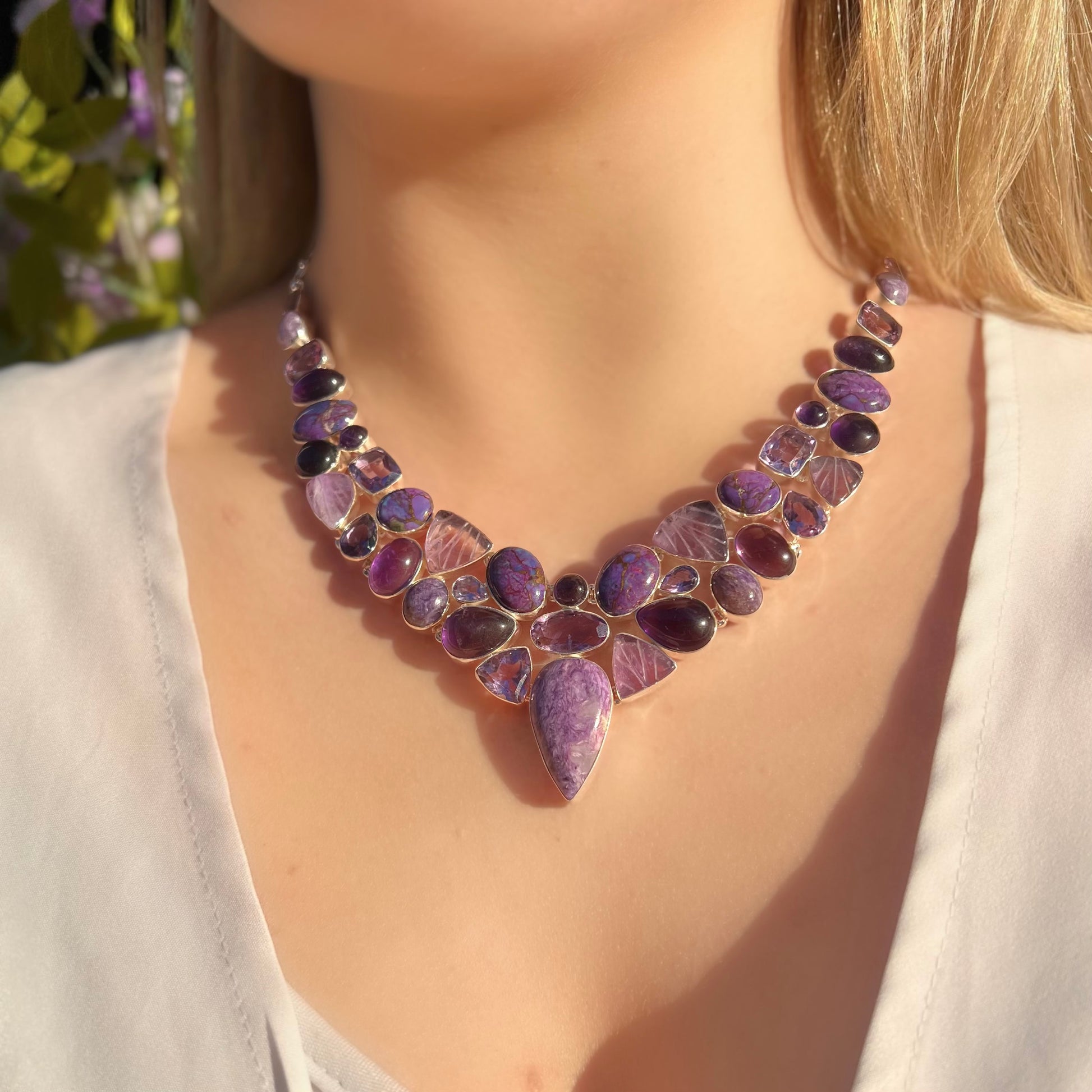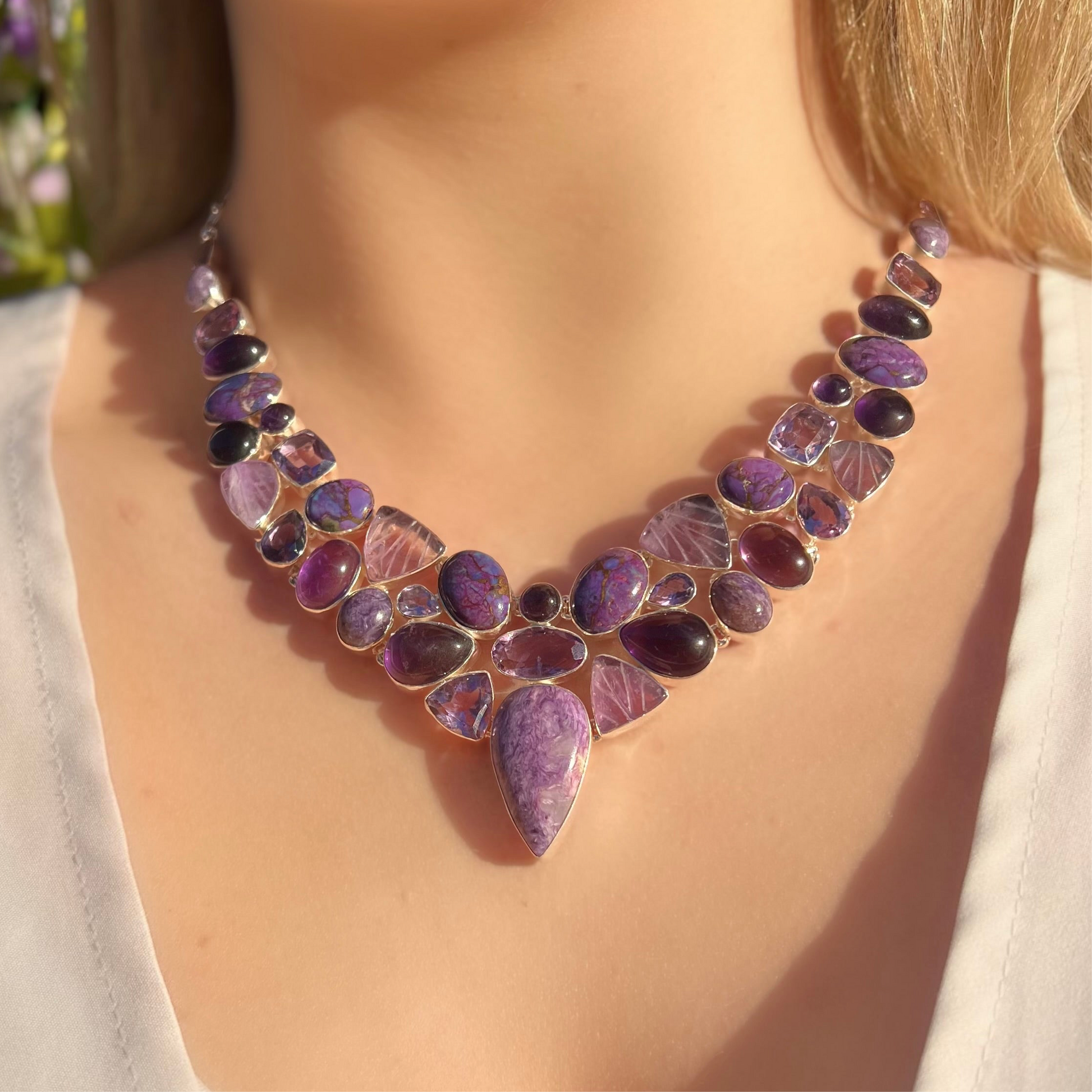 Made from sterling silver, this stunning statement necklace is purple gemstone perfection!