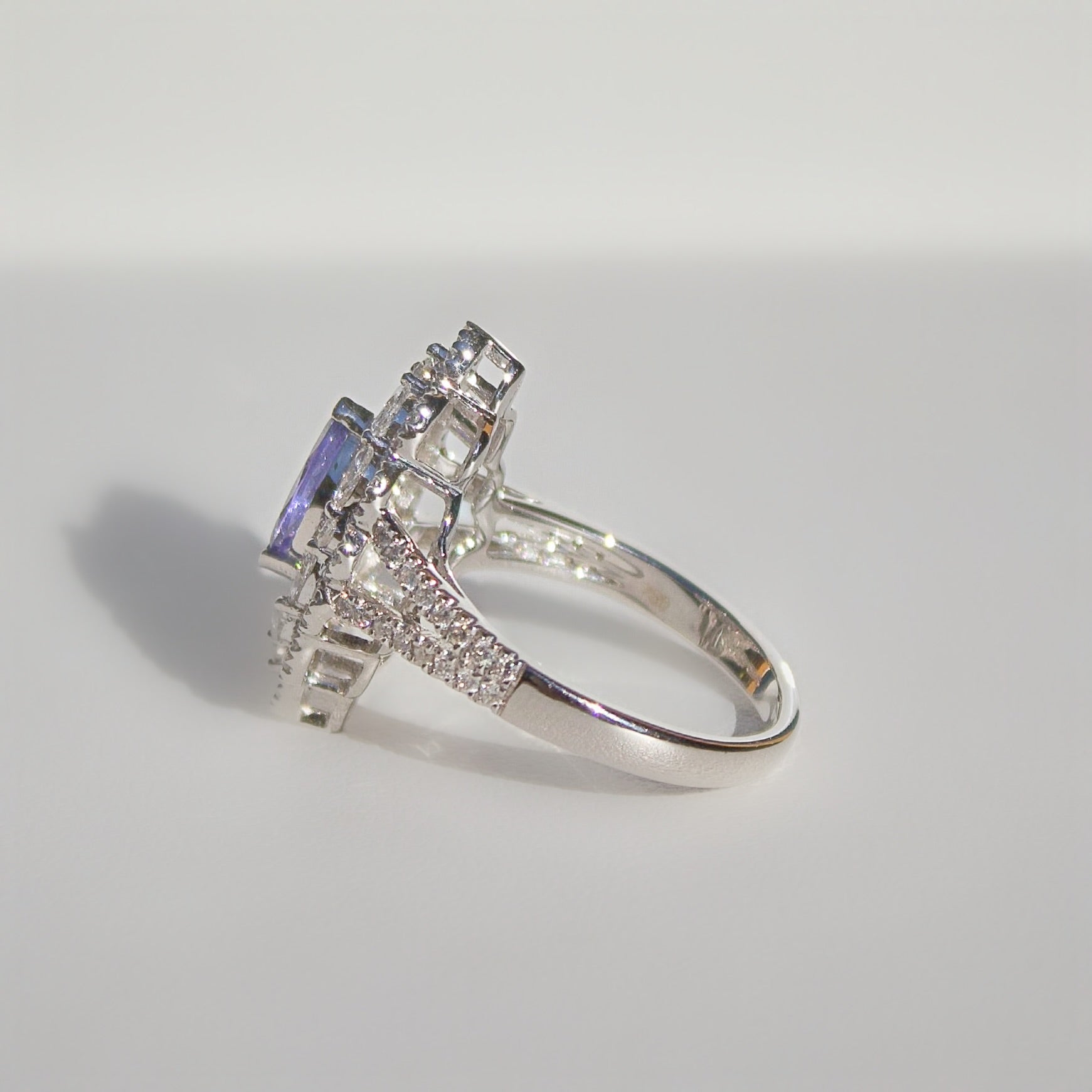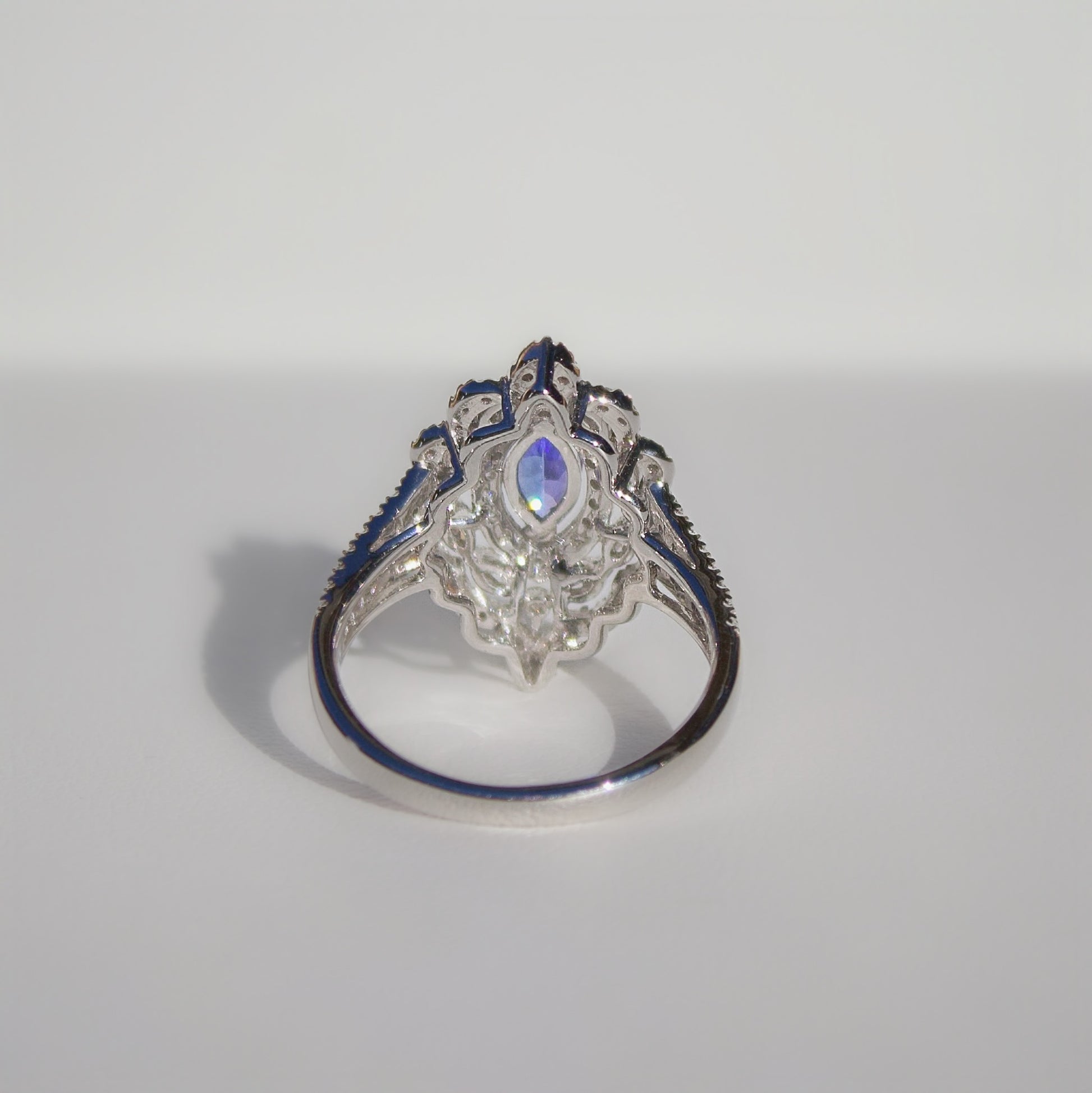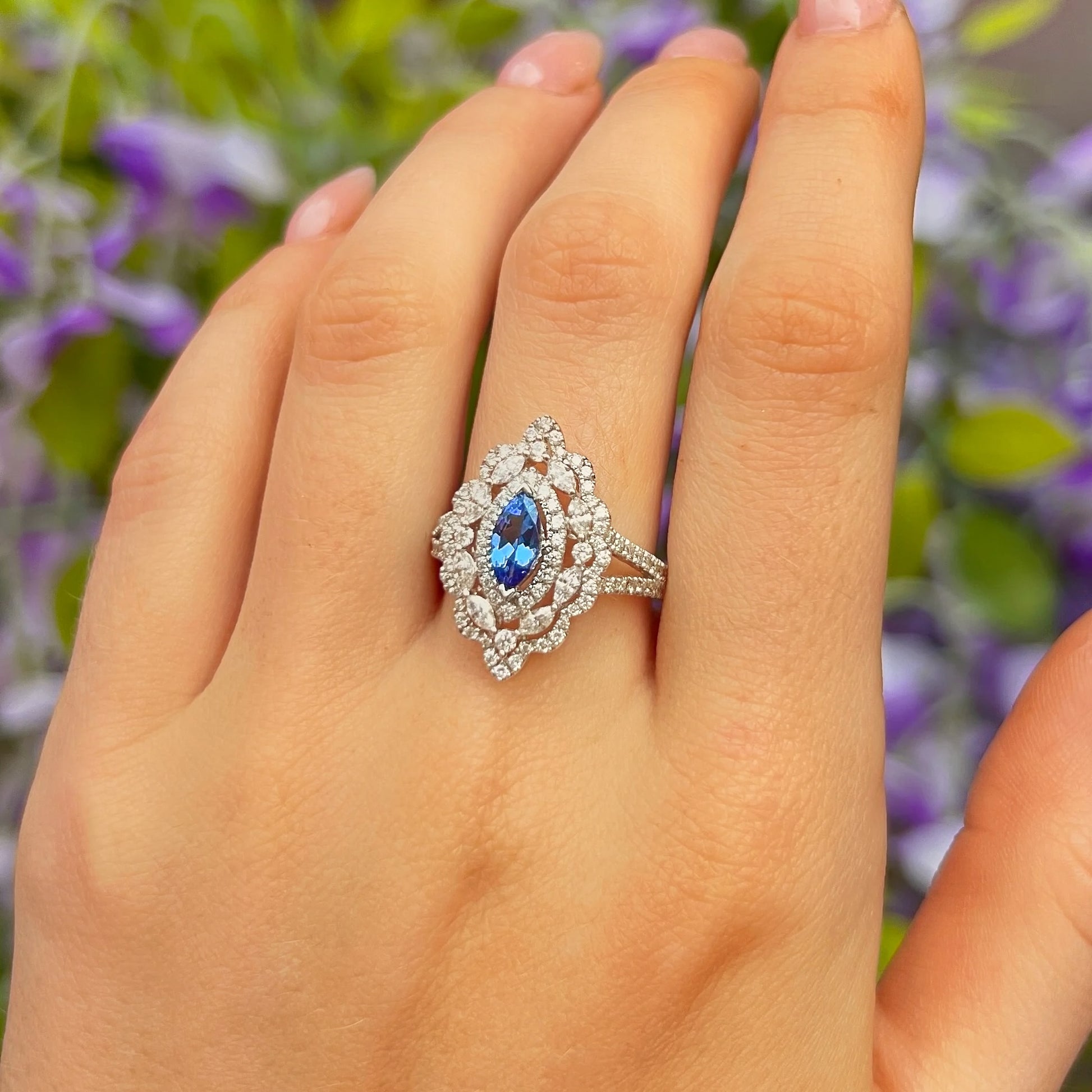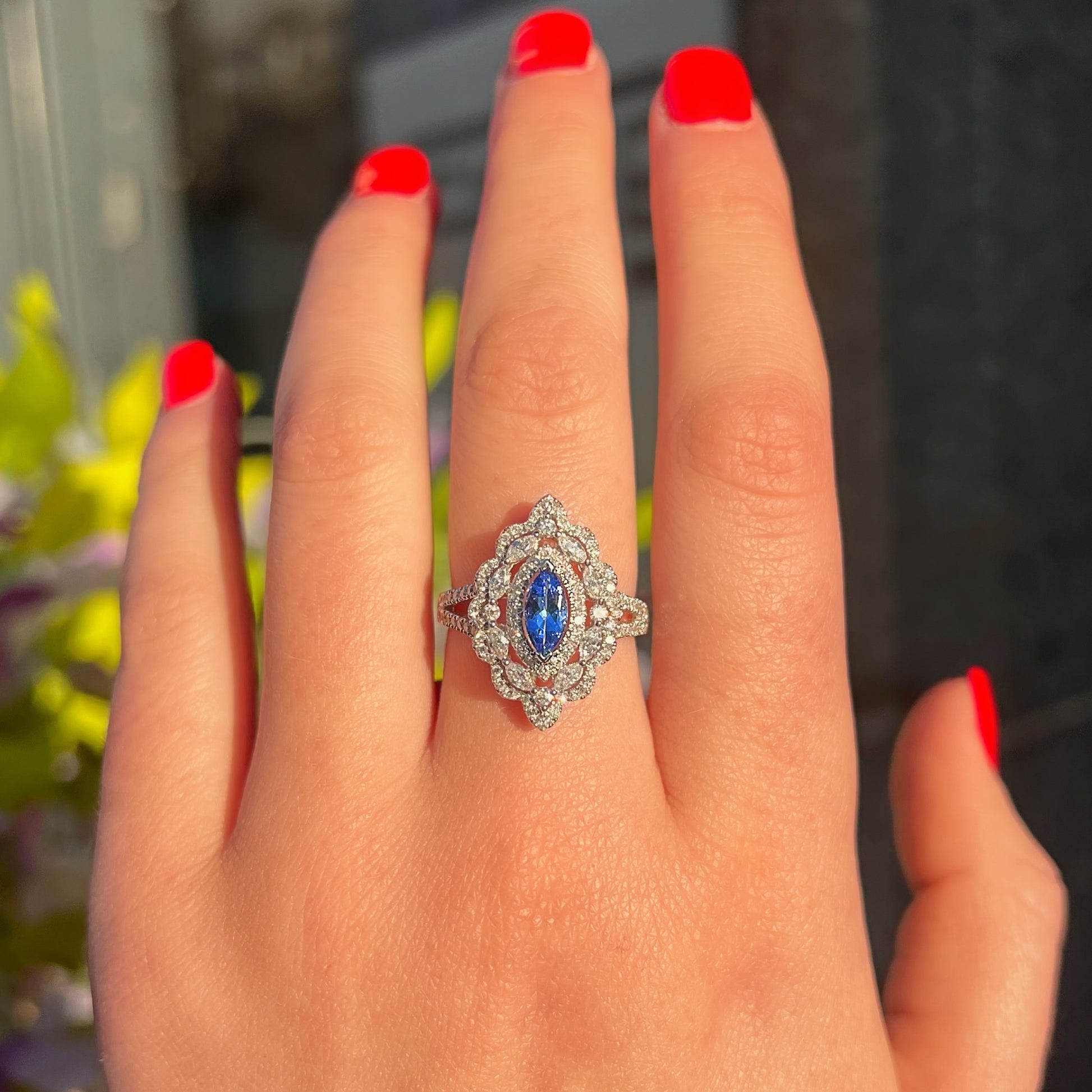 The Victoria Ring - Sparkling 18ct White Gold Marquise Tanzanite and Diamond - Size O