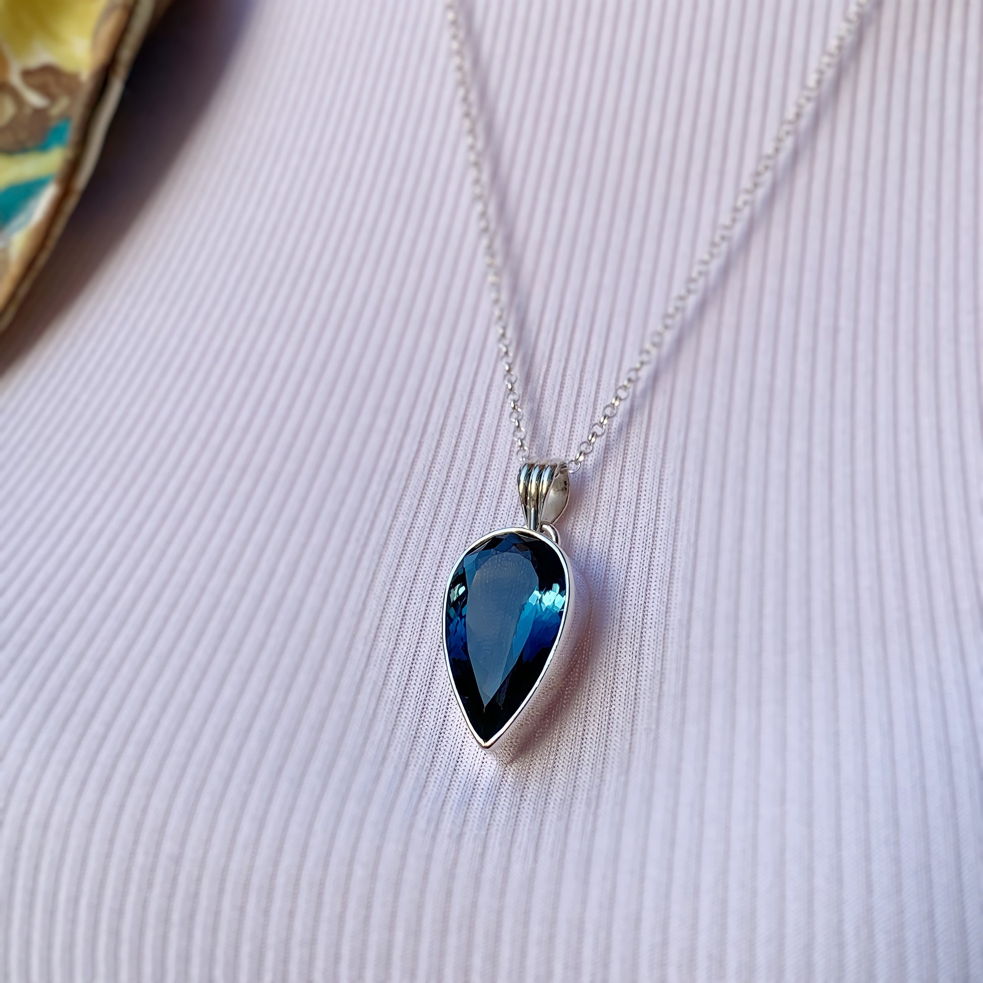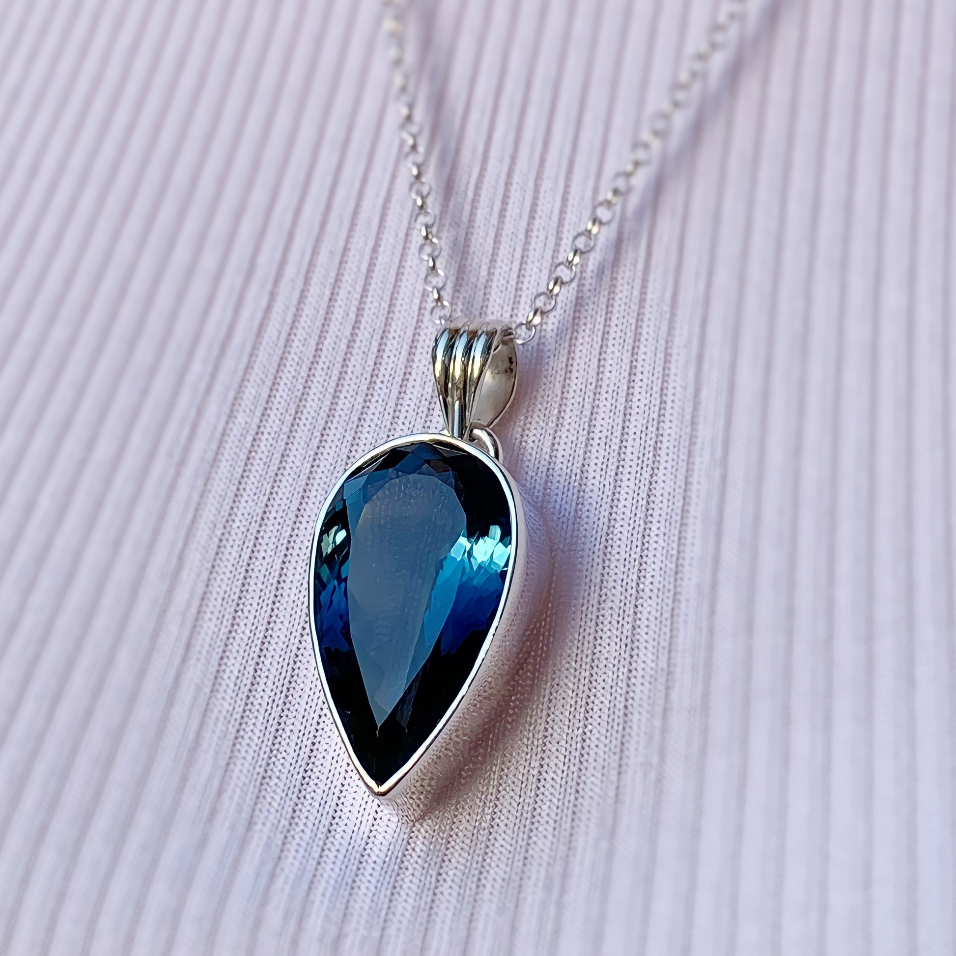 Large Pear Cut Sterling Silver London Blue Topaz Pendant