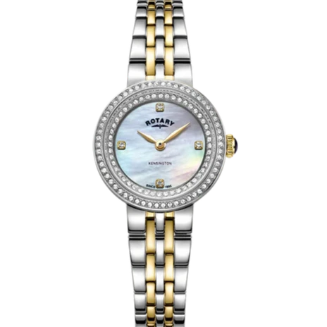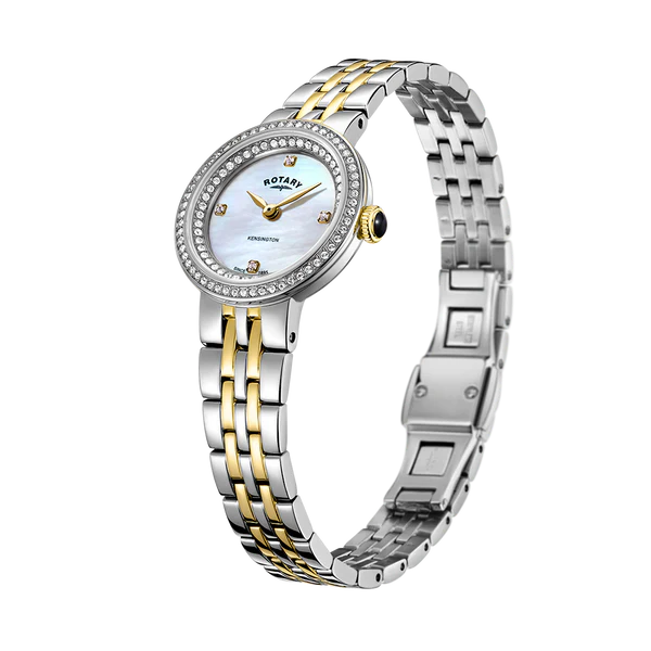 Rotary Two Tone Contemporary Crystal Set Ladies Watch