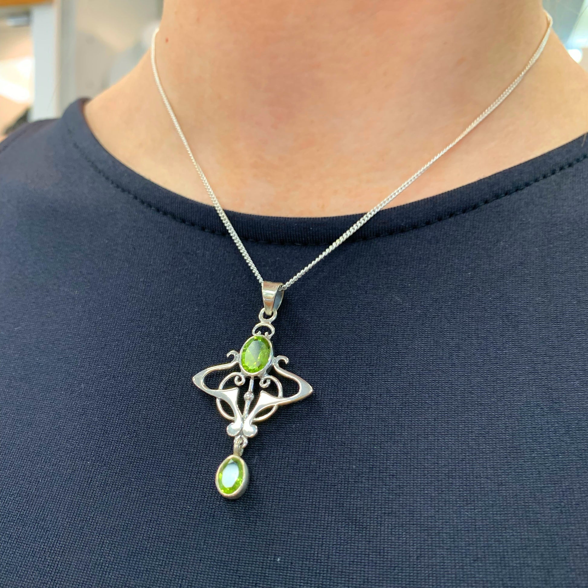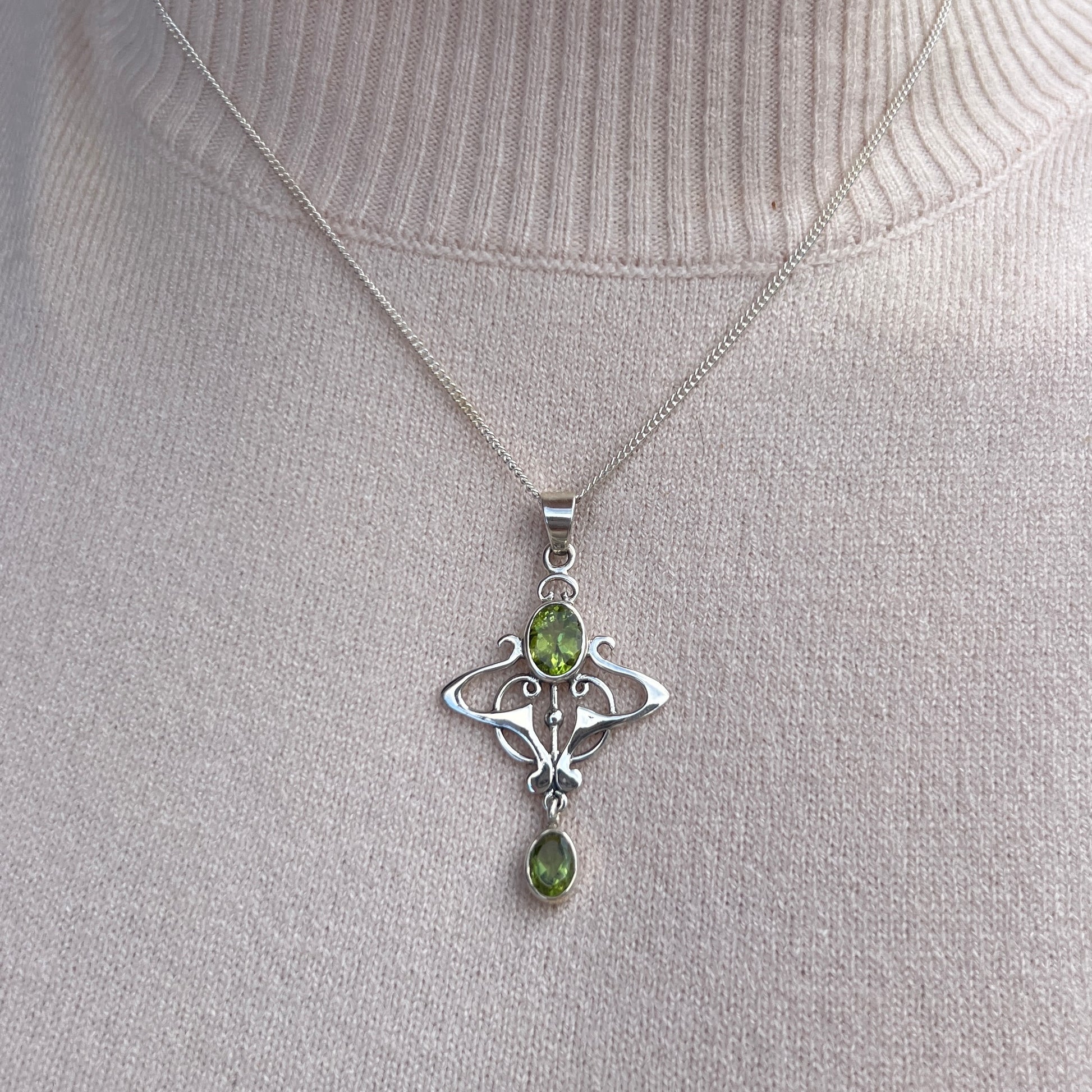 Sterling Silver Peridot Art Nouveau Inspired Necklace