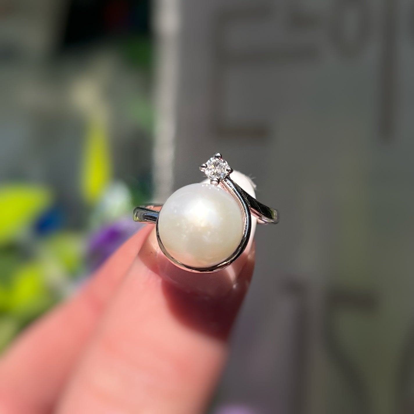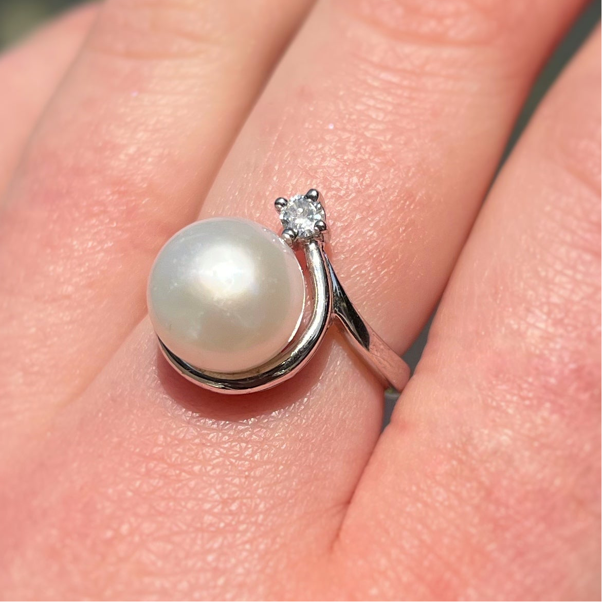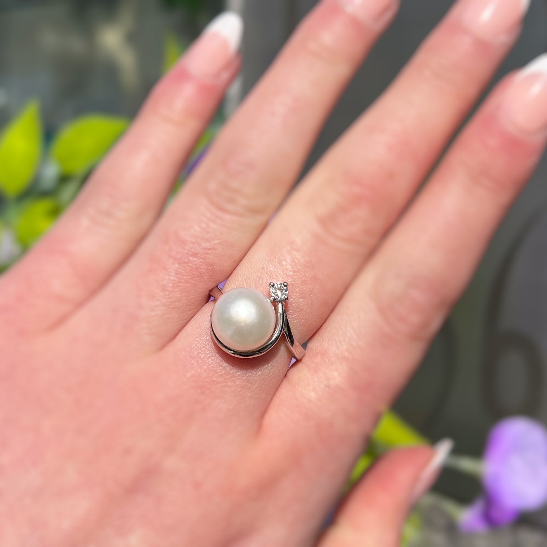 Sterling Silver Cubic Zirconia and Pearl Swirl Ring - M 1/2