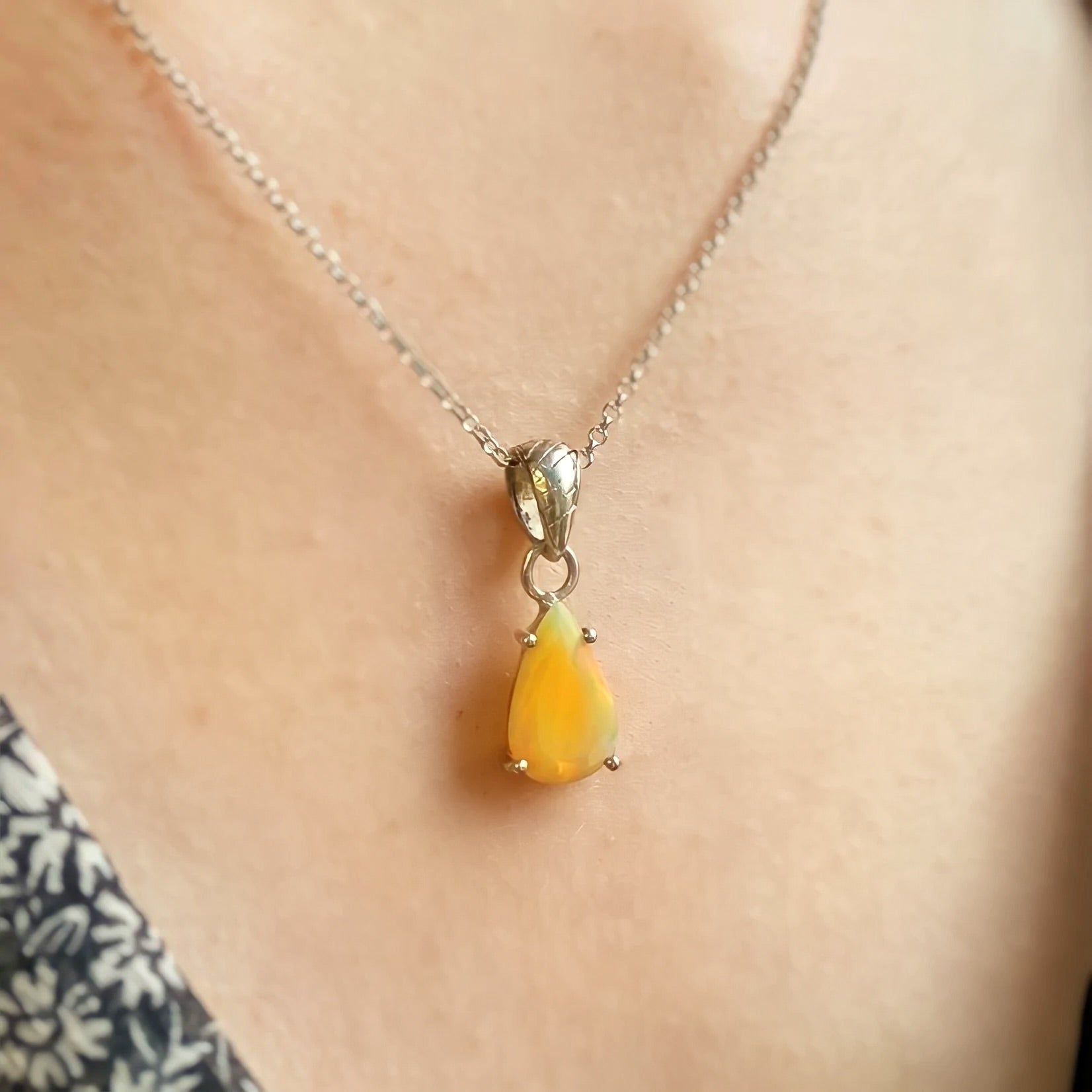 Sterling Silver Pear Cut Orange Fire Opal Necklace