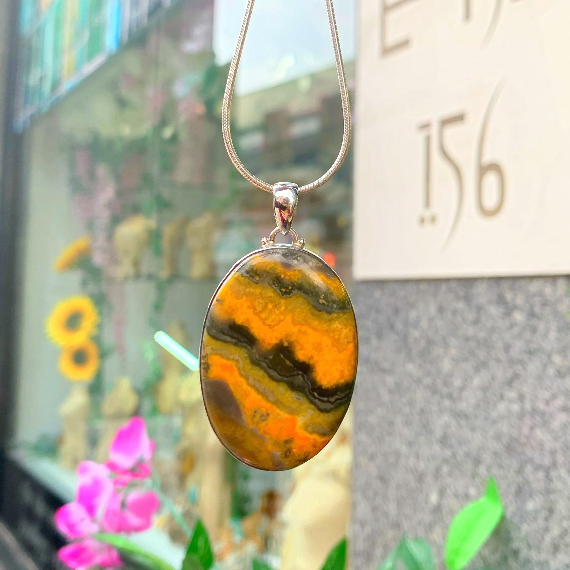 Sterling Silver Bumblebee Jasper Chunky Oval Pendant