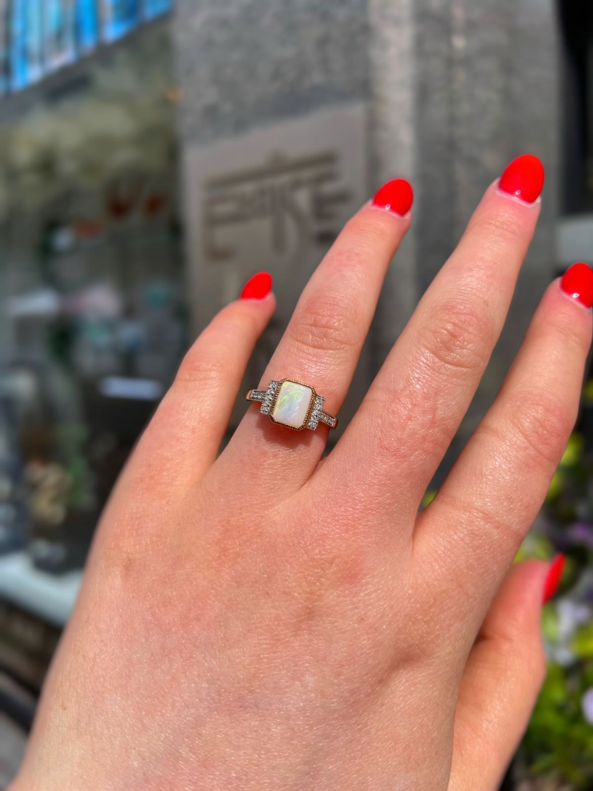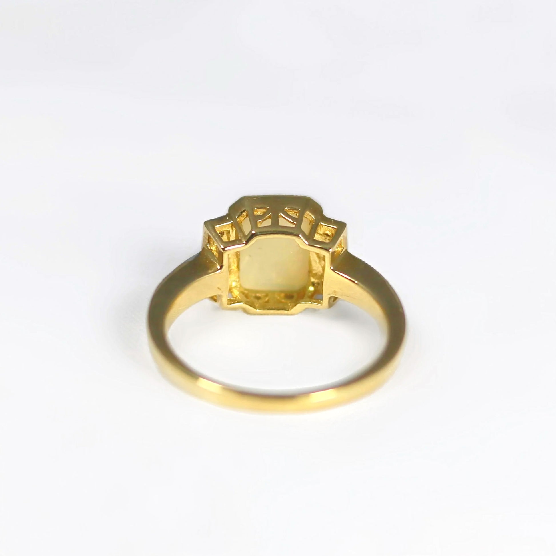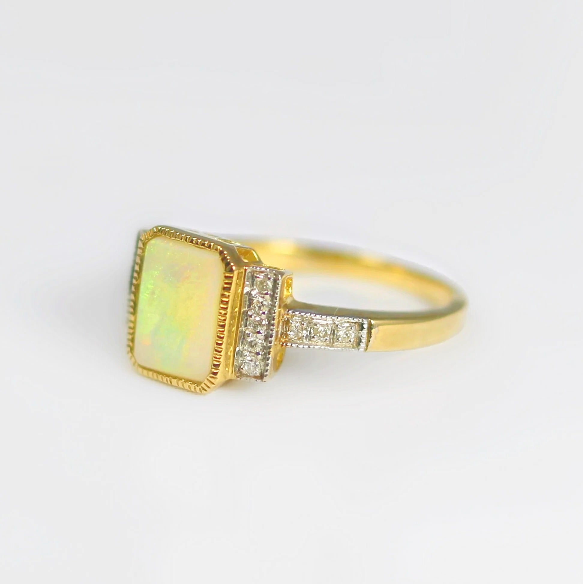 The Opalina Ring - Structured Designer Inspired 9ct Yellow Gold Opal and Diamonds Size K