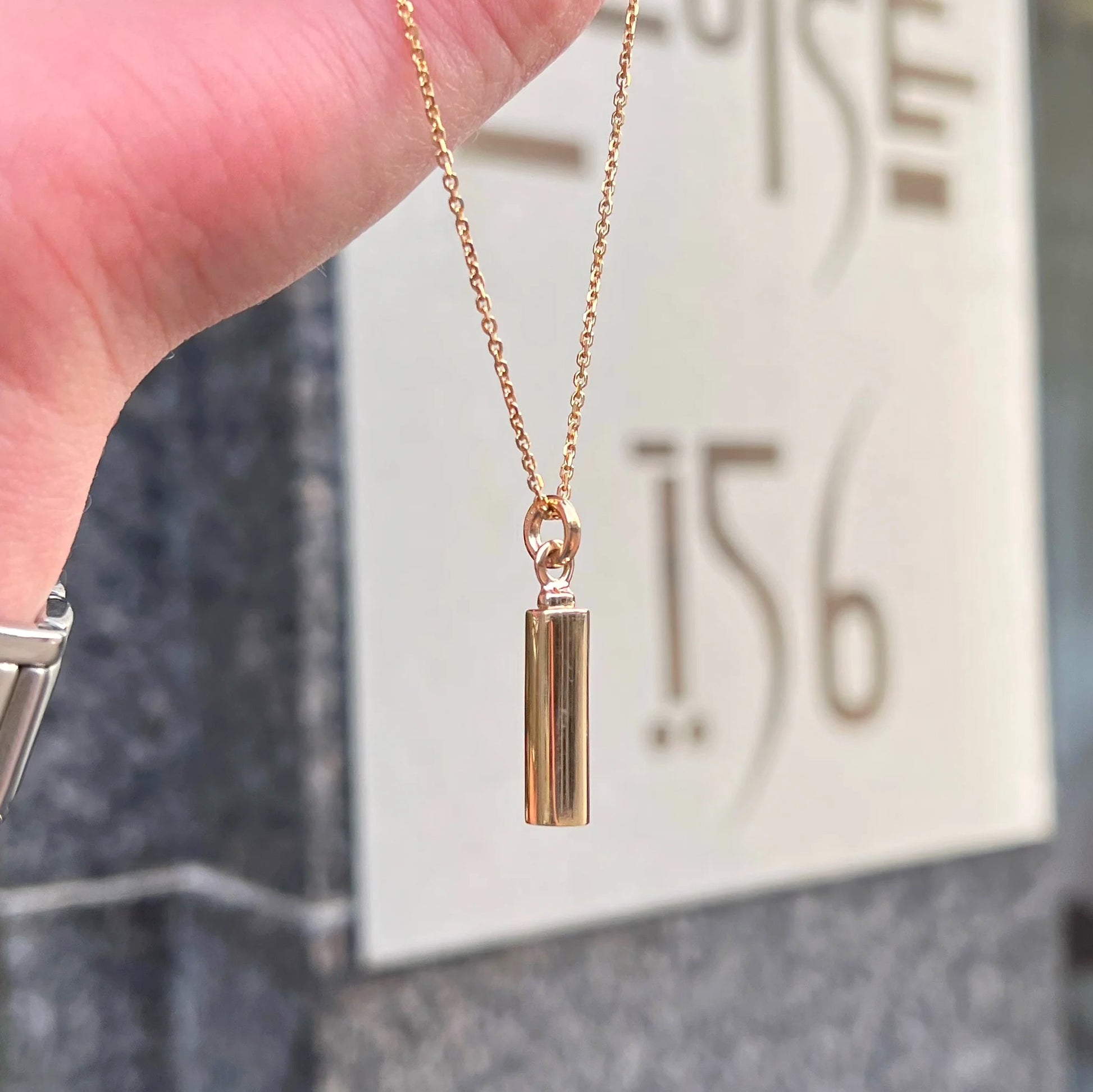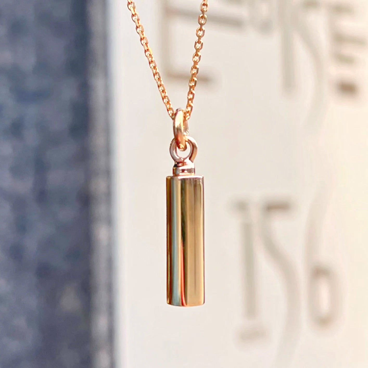 This simple ashes canister pendant is perfect for everyday wear and sympathetic of the occasion as it conceals the ashes and can be be worn all the time due to its sleek design.
