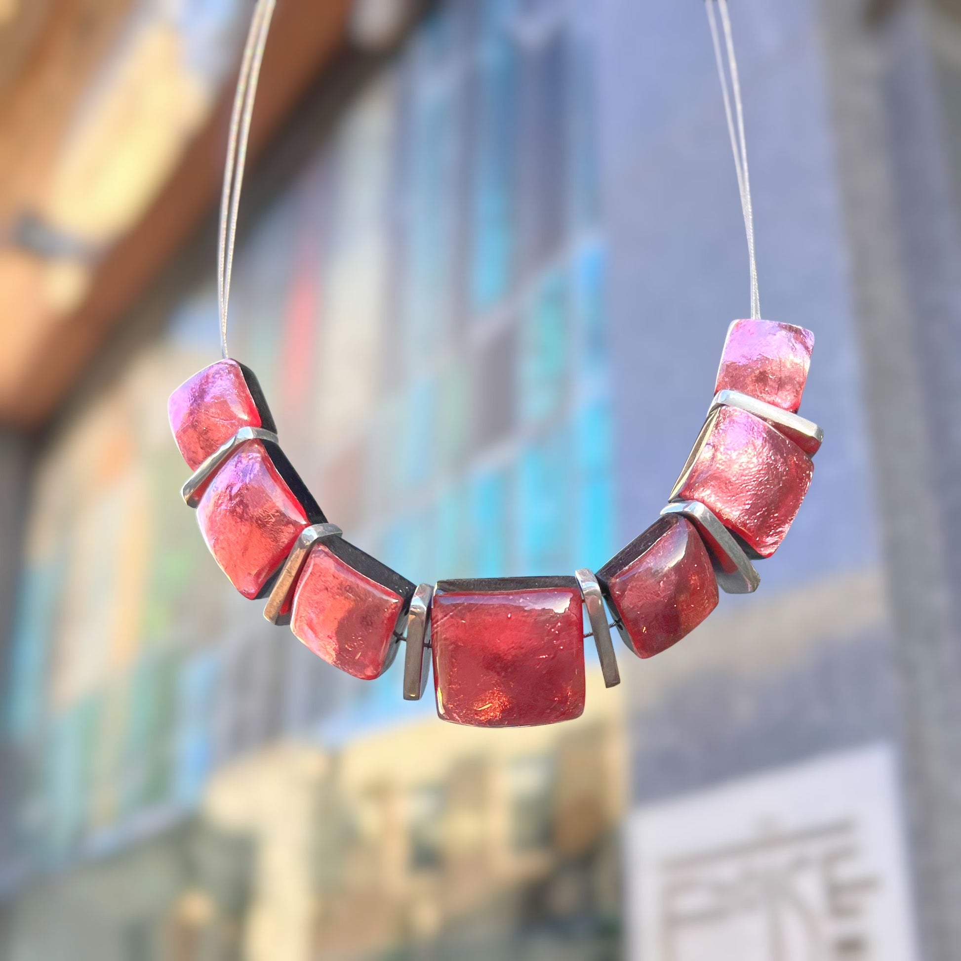 Watch This Space Pink Square Necklace
