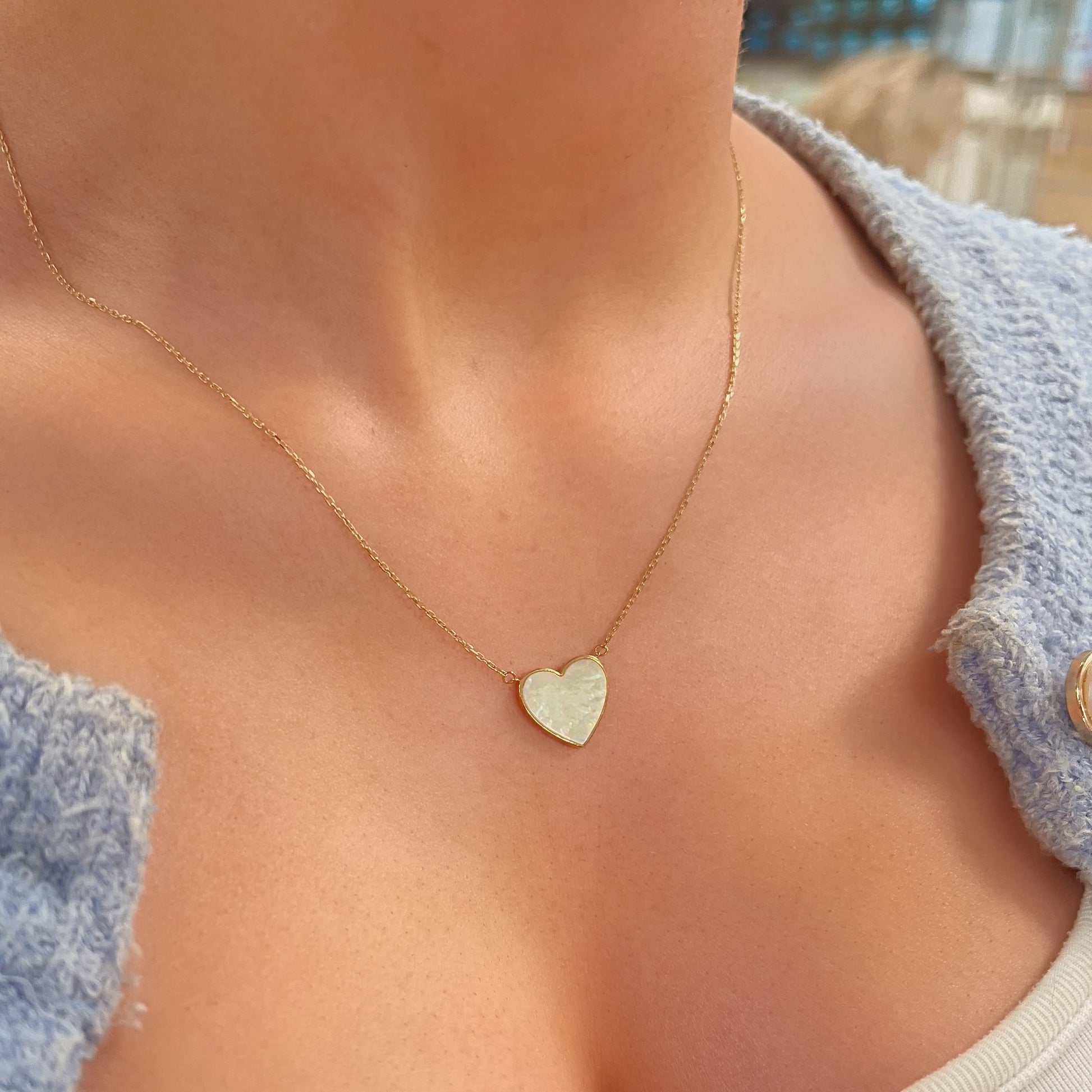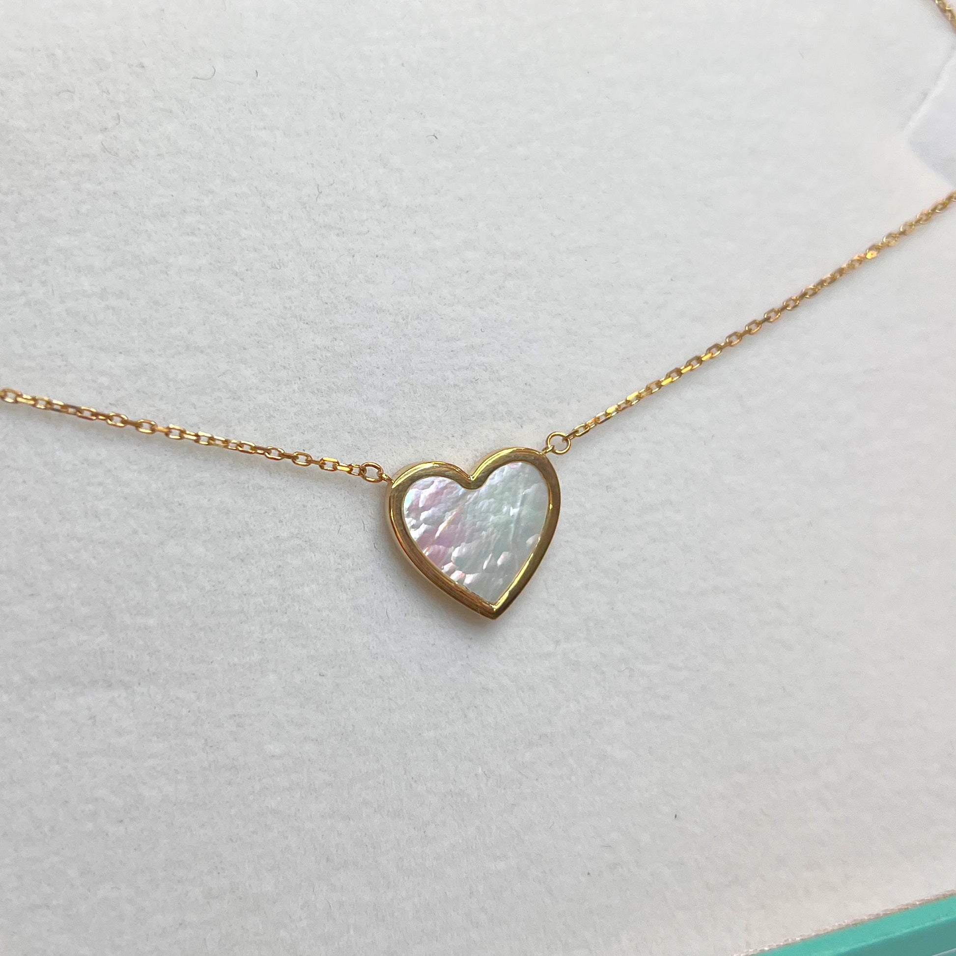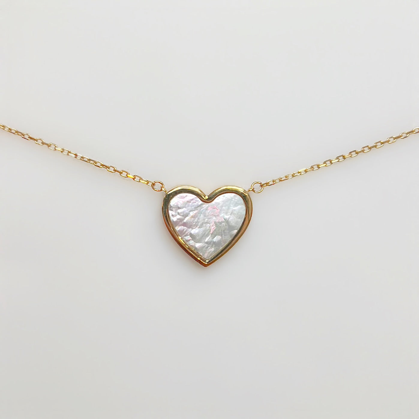 Shimmering 9ct Yellow Mother of Pearl Heart Necklace