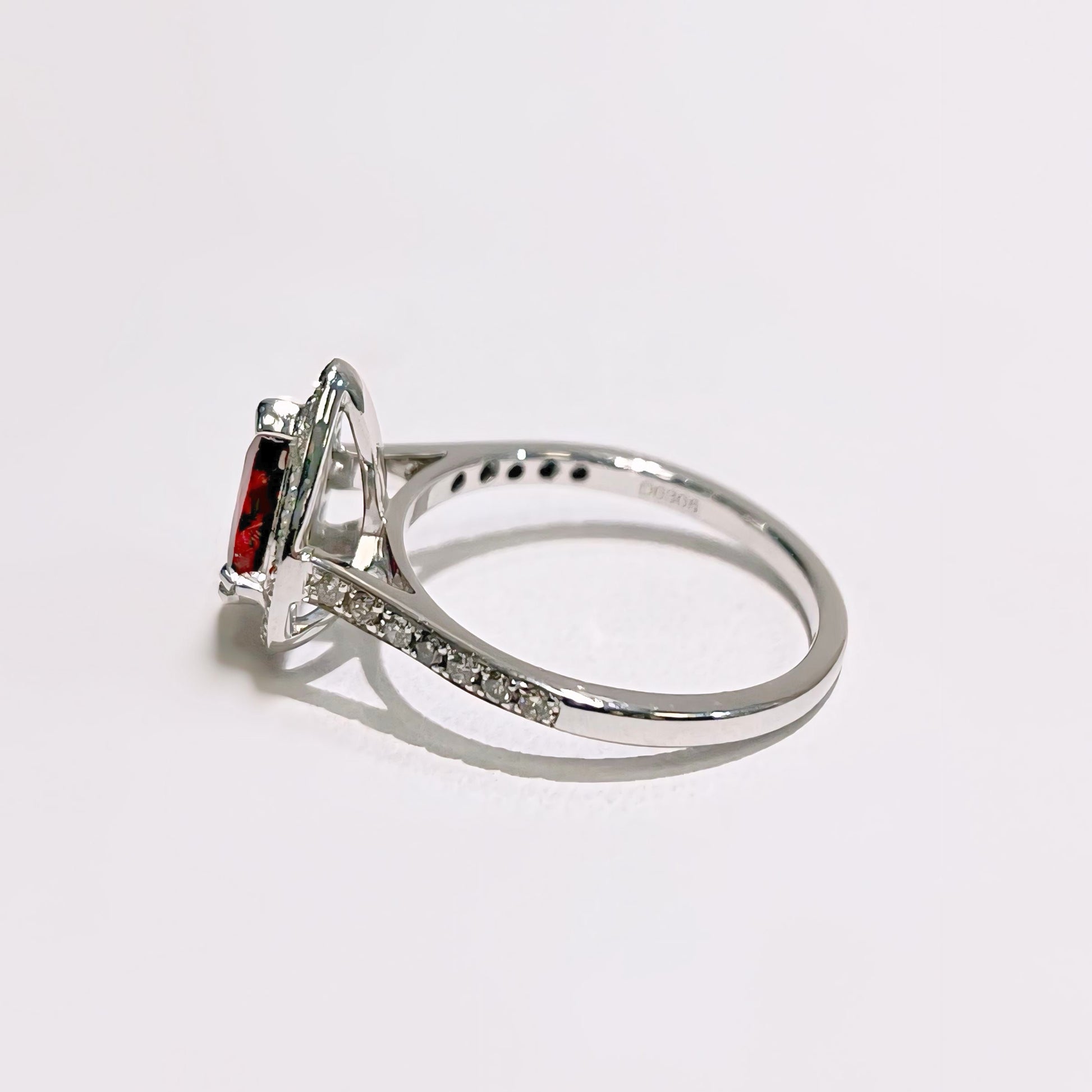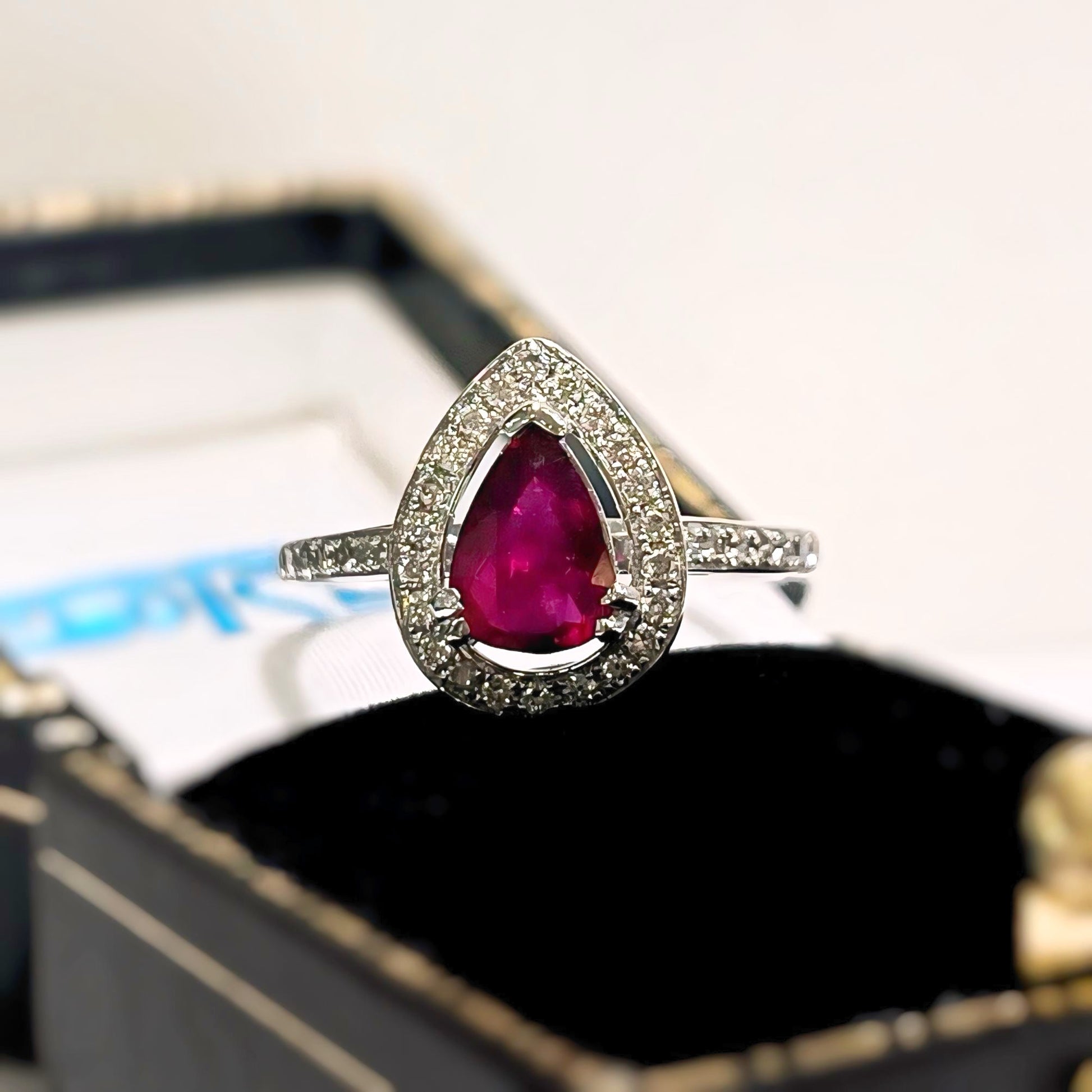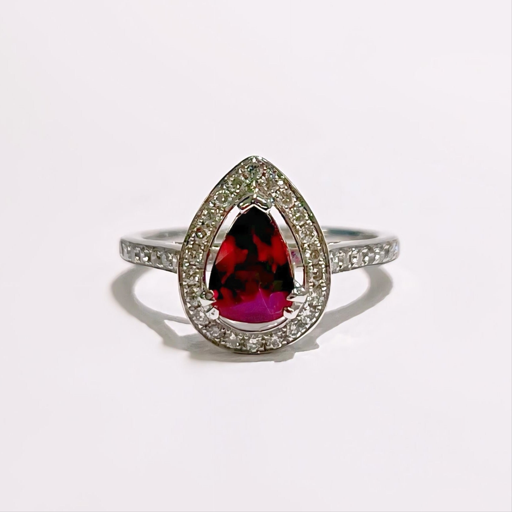 Spectacular 18ct White Gold Red Ruby and Diamond Pear Shaped Ring - Size N