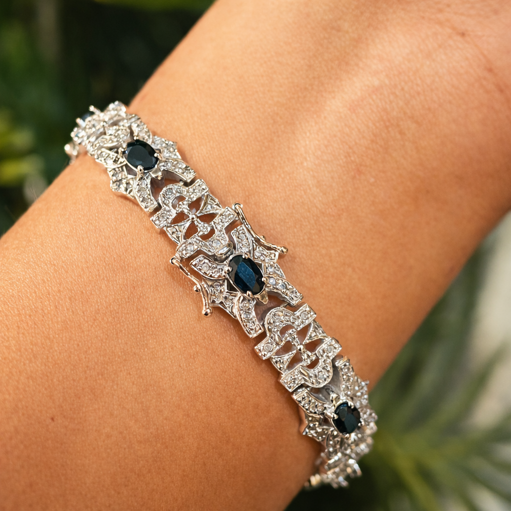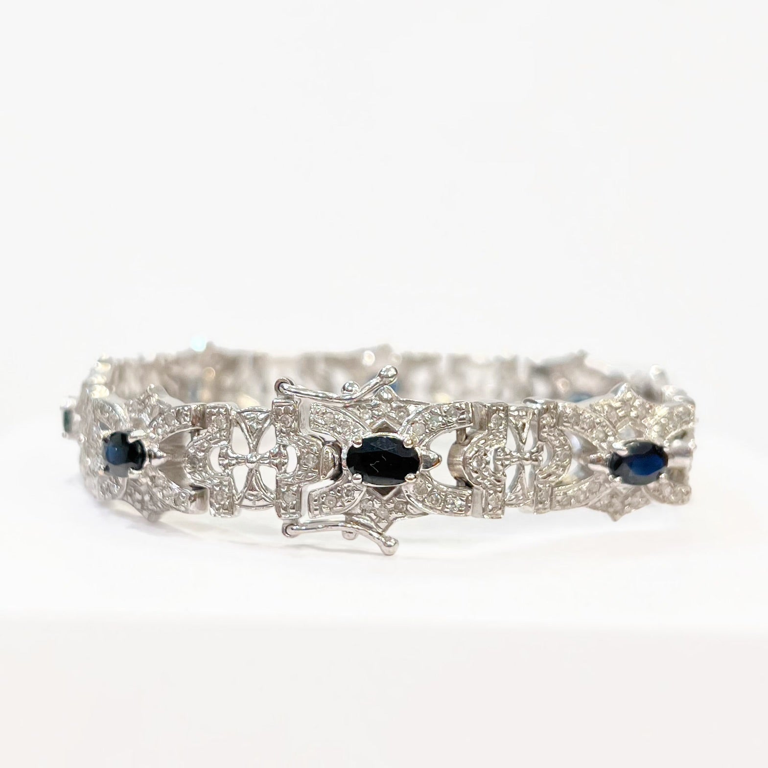 Exquisite Vintage 18ct White Gold Sapphire and Diamond Bracelet