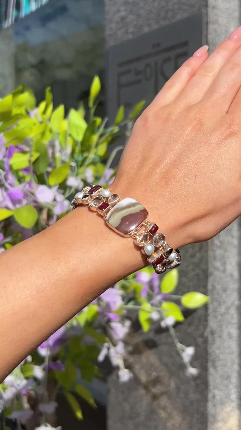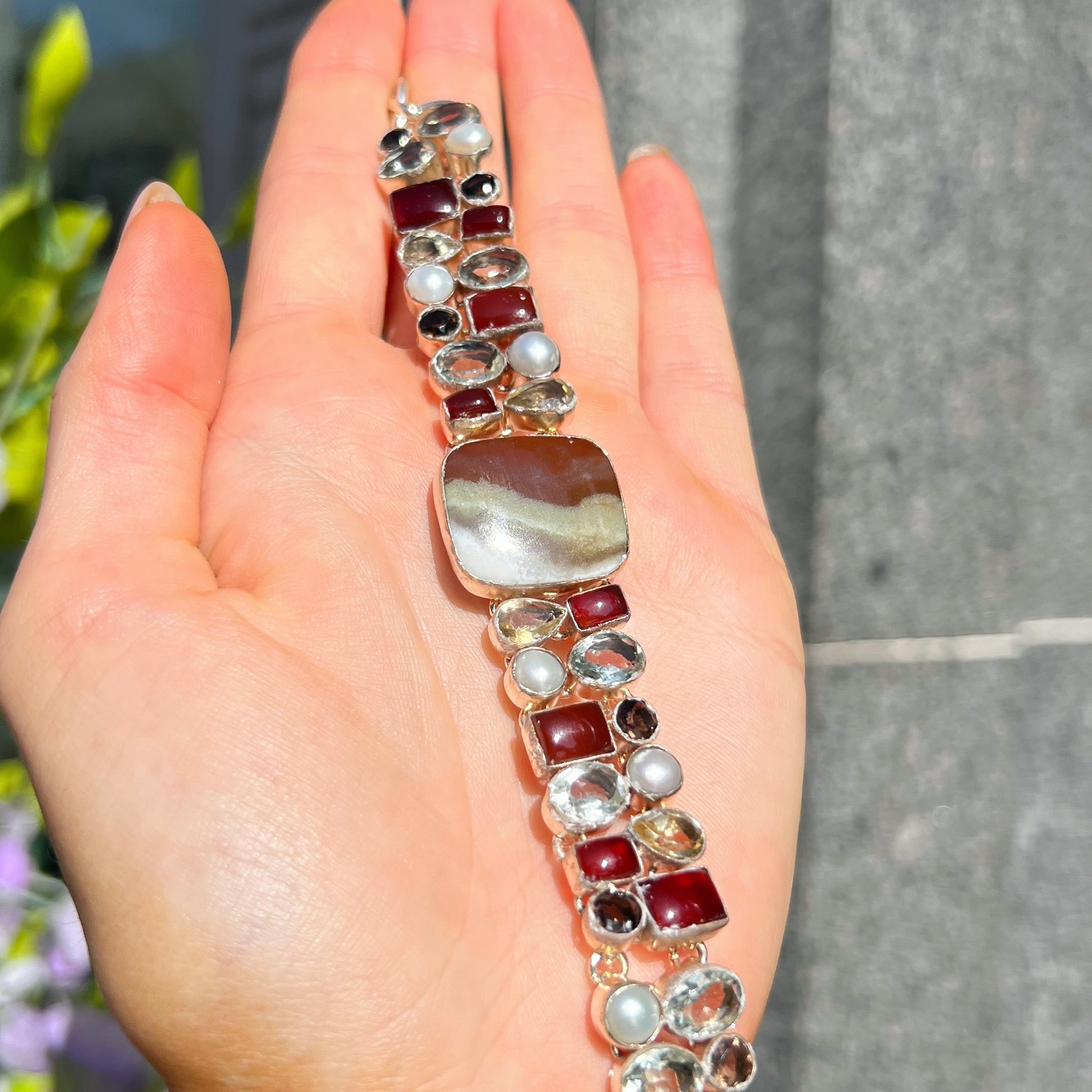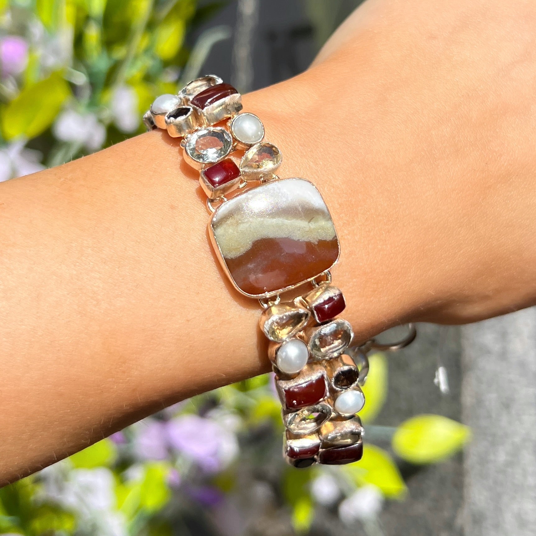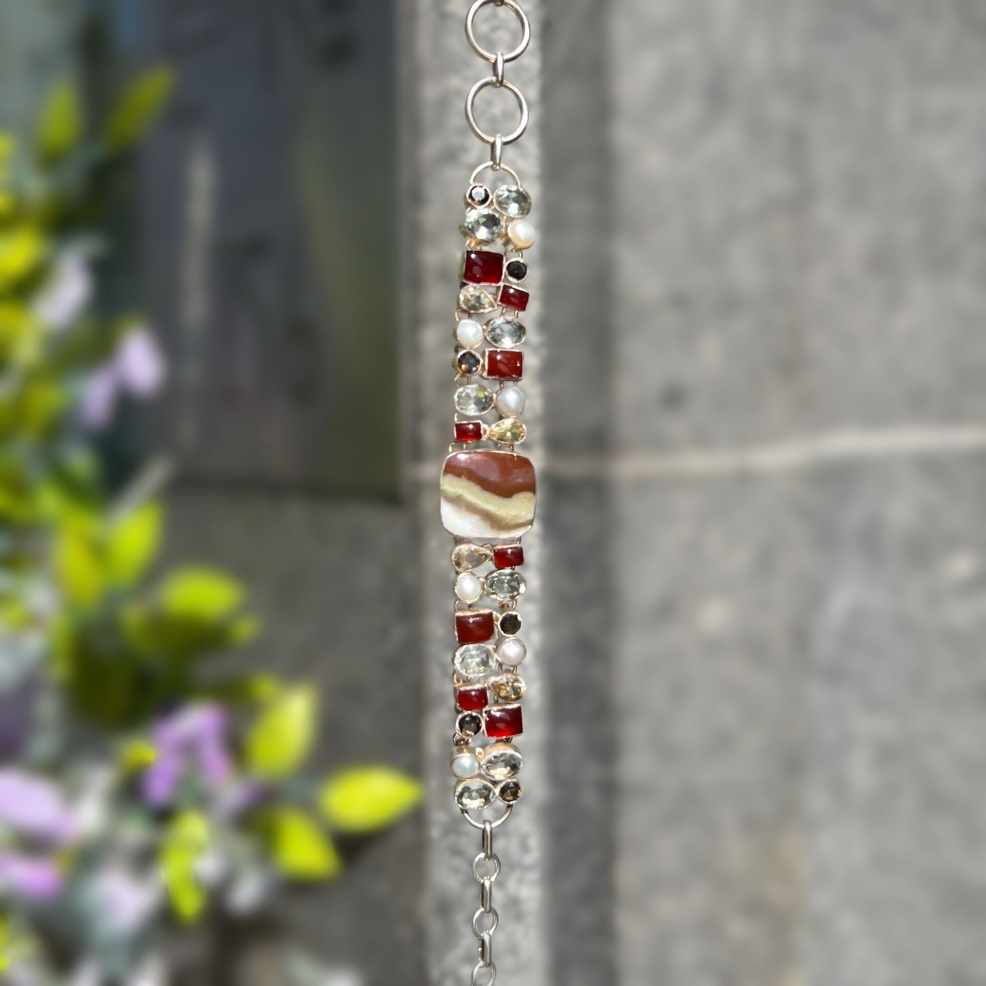 Agate, Pearl, Citrine, Topaz, Smoky Quartz & Carnelian Sterling Silver Bracelet