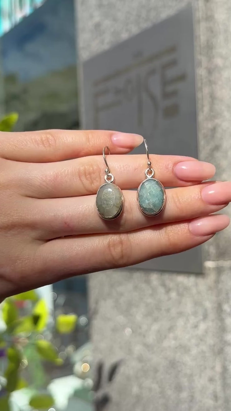 Naturally Varied Oval Cut Green Emerald Sterling Silver Drop Earrings