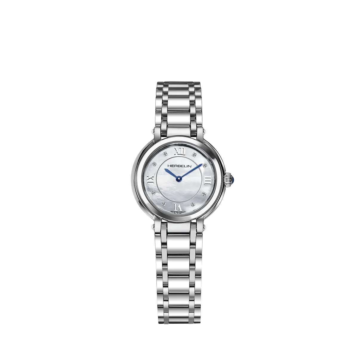 Galet is the new collection from the Herbelin watchmaking house. Elegant and pure, Galet will dress with elegance the feminine wrists. All stainless steel, this watch has a genuine white mother of pearl back. The dial punctuated with Roman numerals and zircon hour markers gives Galet a feminine and modern look.
