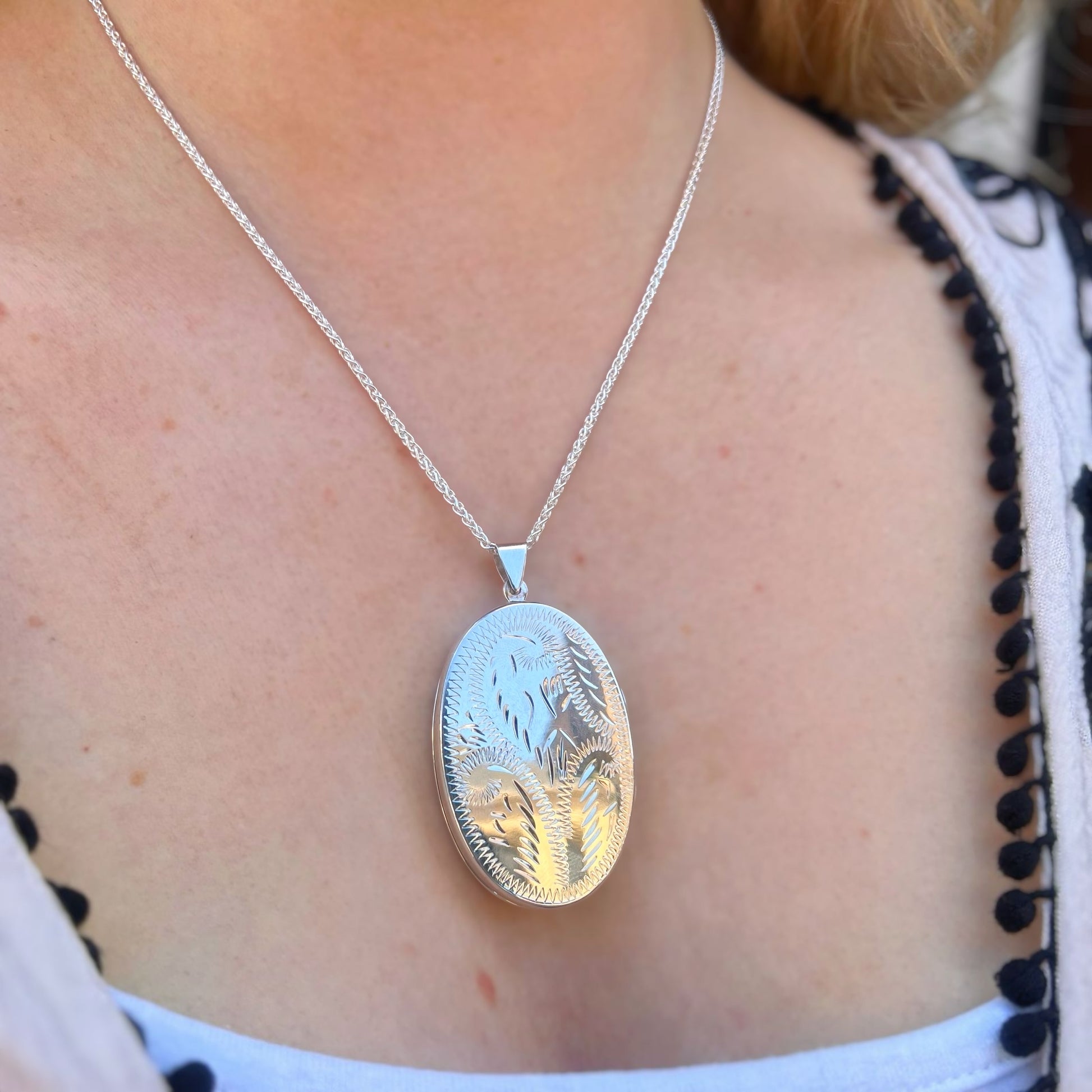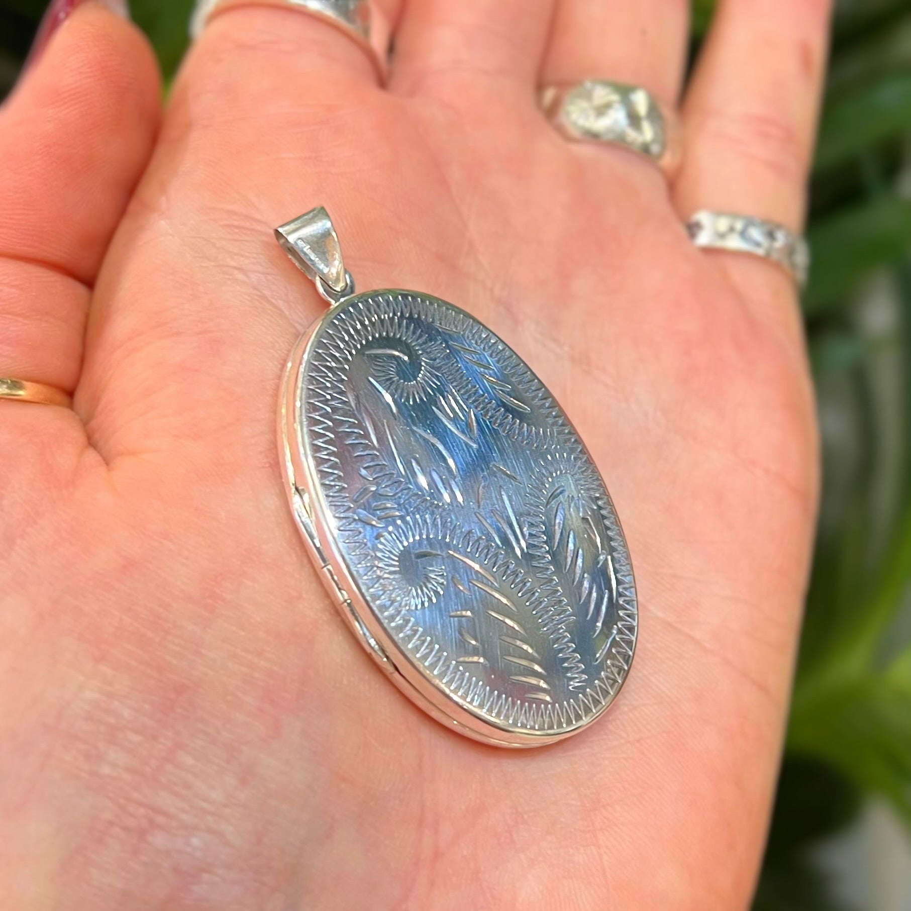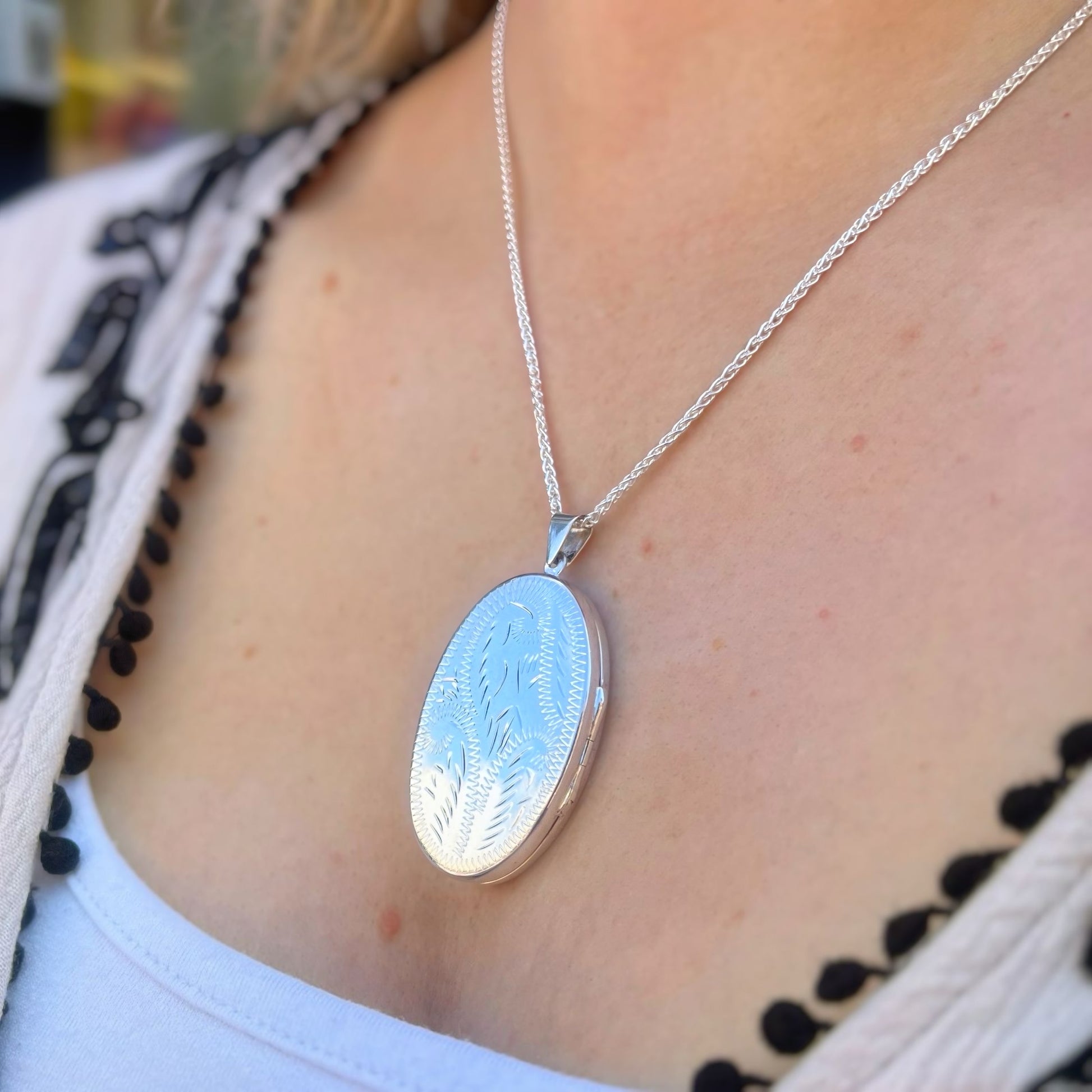 Large Sterling Silver Double-Sided Engraved Oval Locket