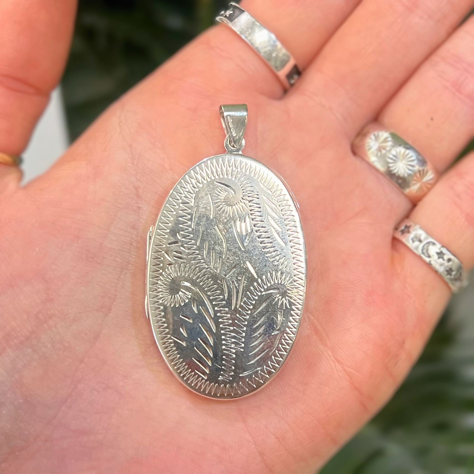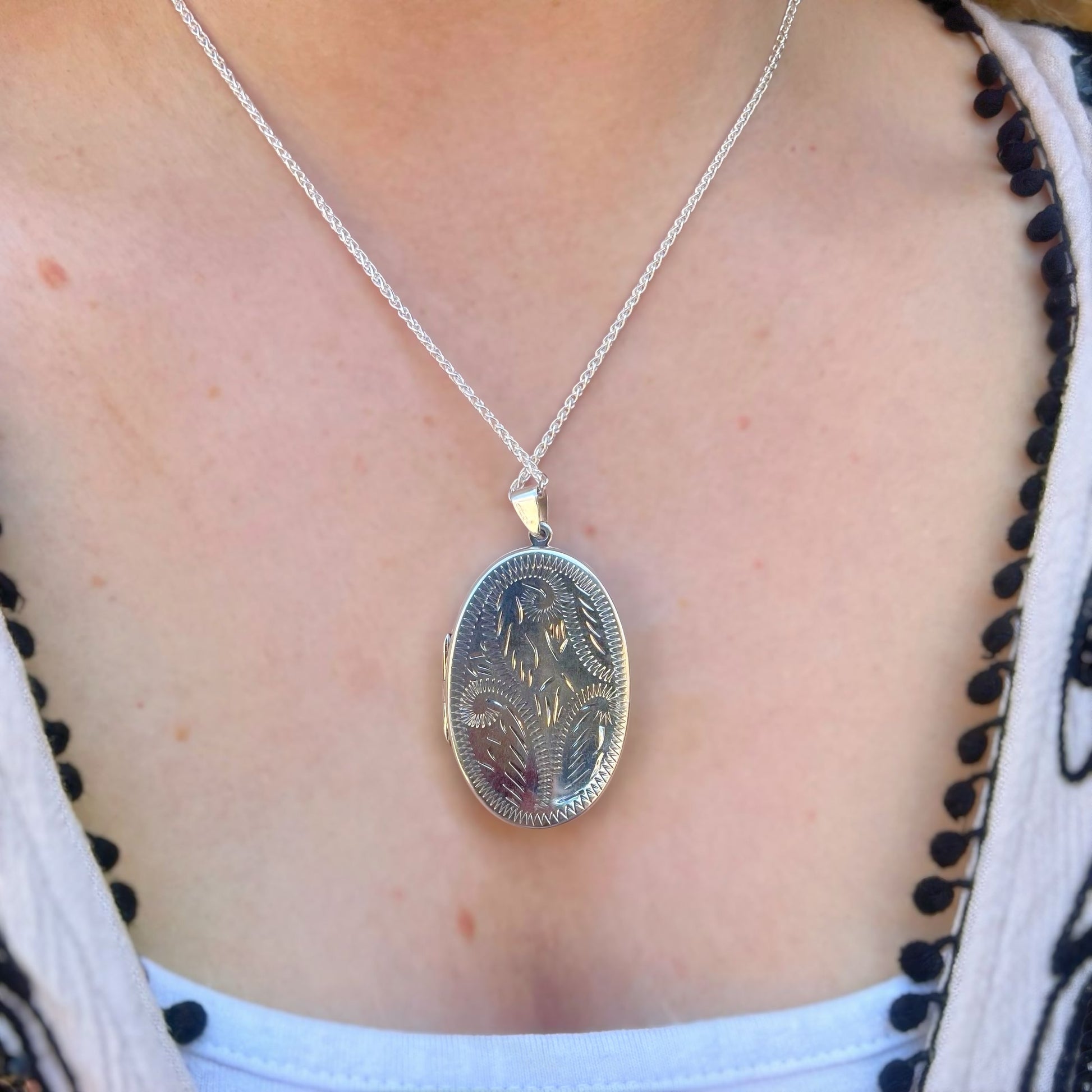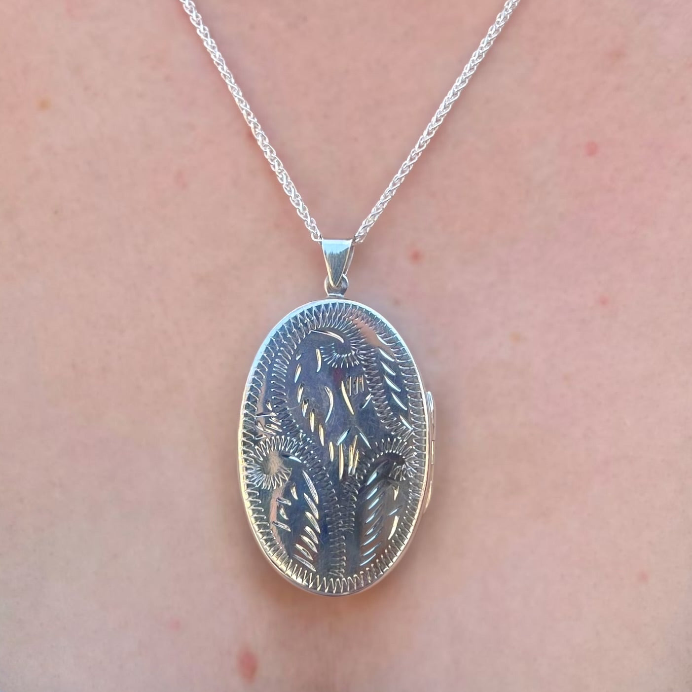 Large Sterling Silver Double-Sided Engraved Oval Locket