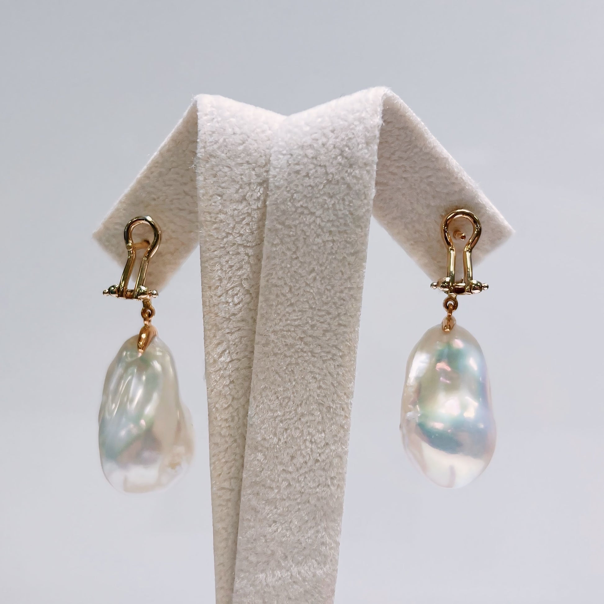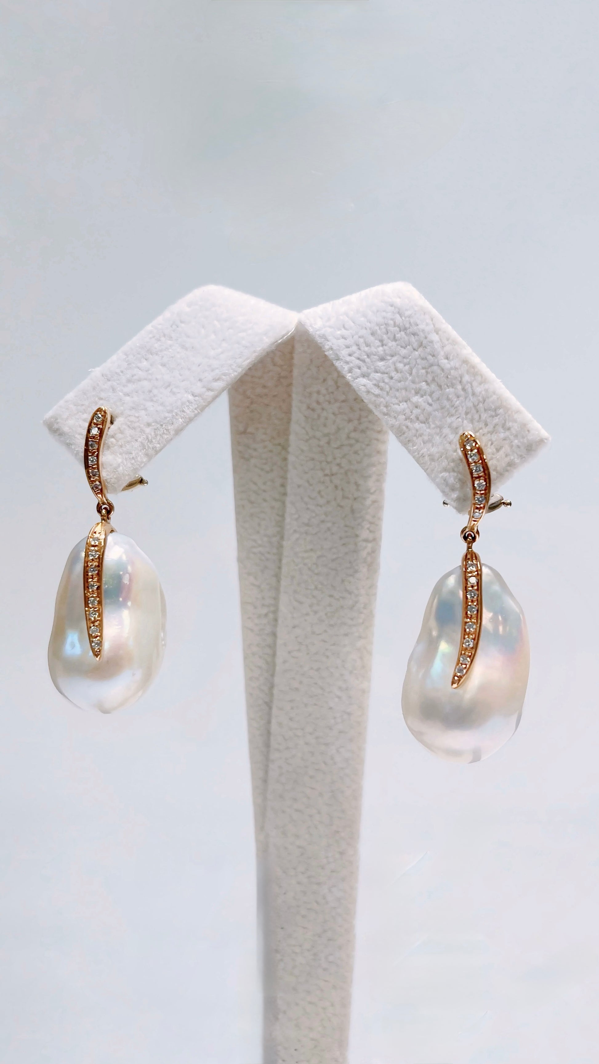 18ct Rose Gold Diamond & Large Baroque Pearl Drop Earrings