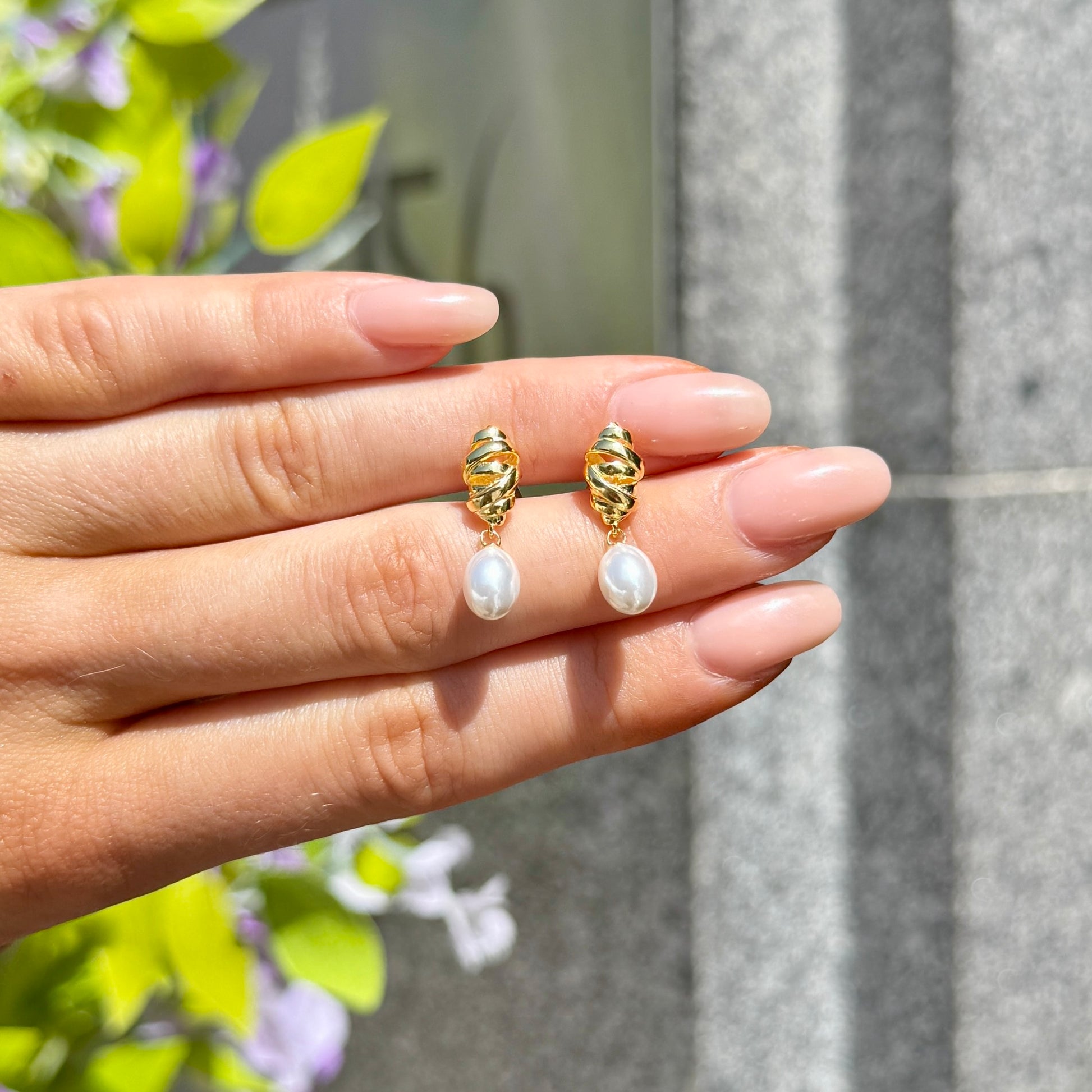 9ct Gold Plated Twist Freshwater Pearl Stud Earrings