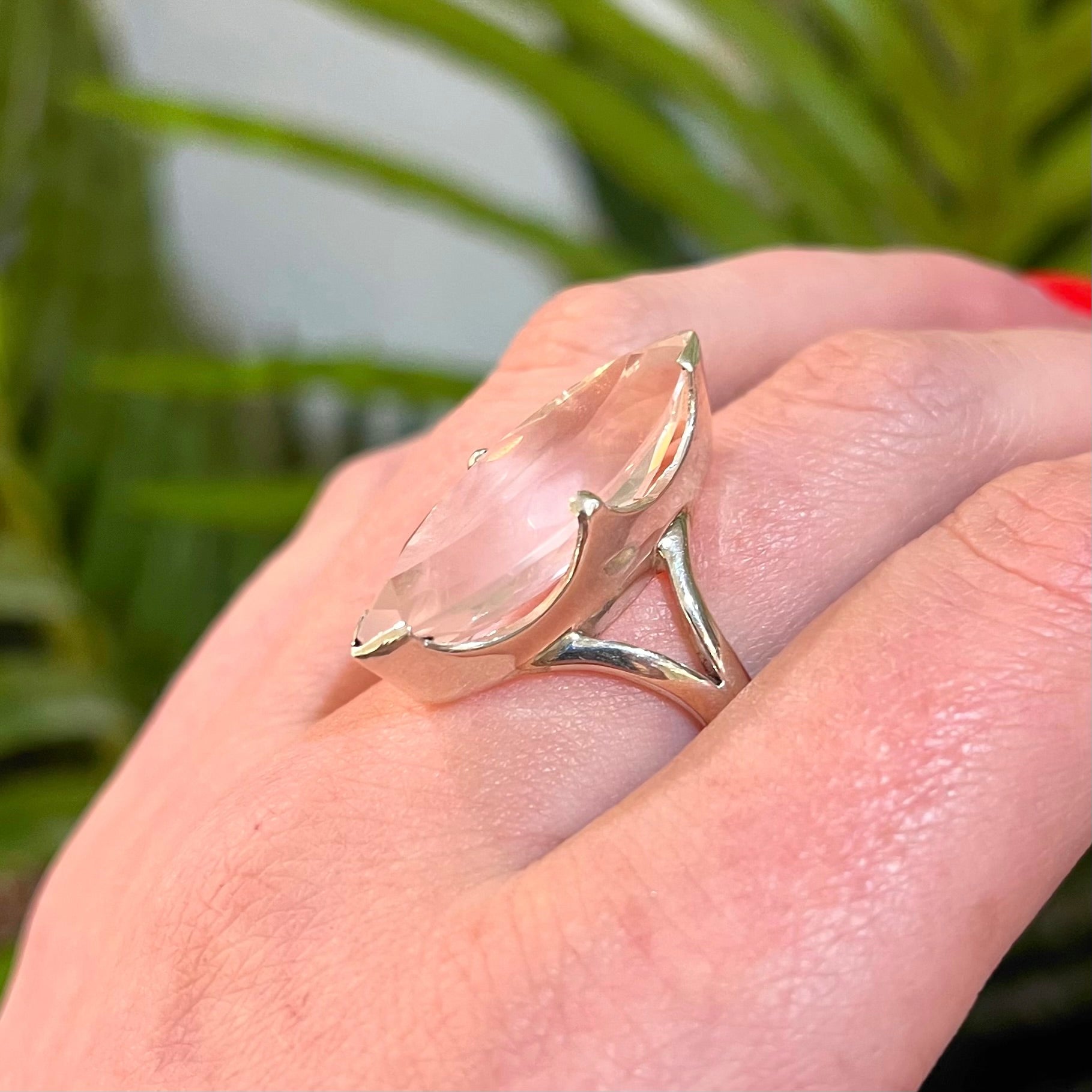 Pink Rose Quartz Sterling Silver Marquise Cut Ring - Size Q