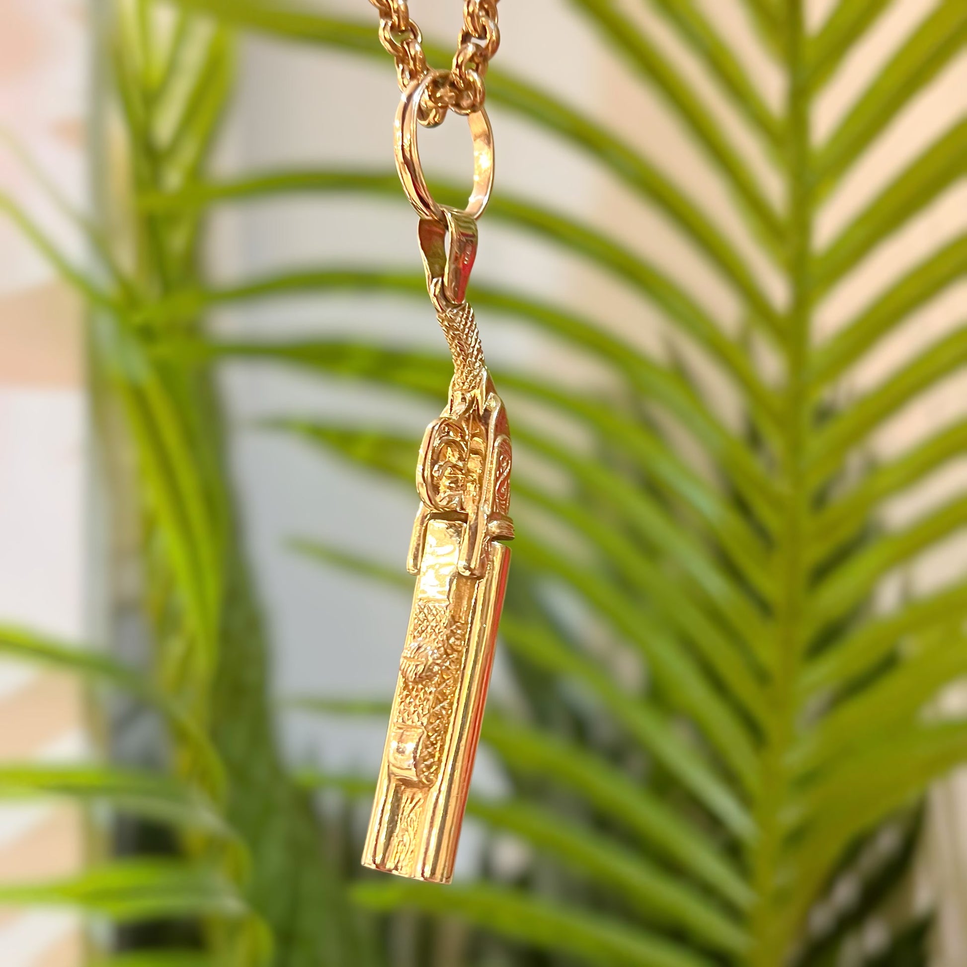 We’ve paired this art piece with a chunky 9ct yellow gold belcher chain that weighs 19.36 grams, measures 20 inches in length, and is finished with a trigger catch for secure closure. The chain is priced separately at £1,350, but we’ve added an option to purchase both the chain and pendant together for £3,345.