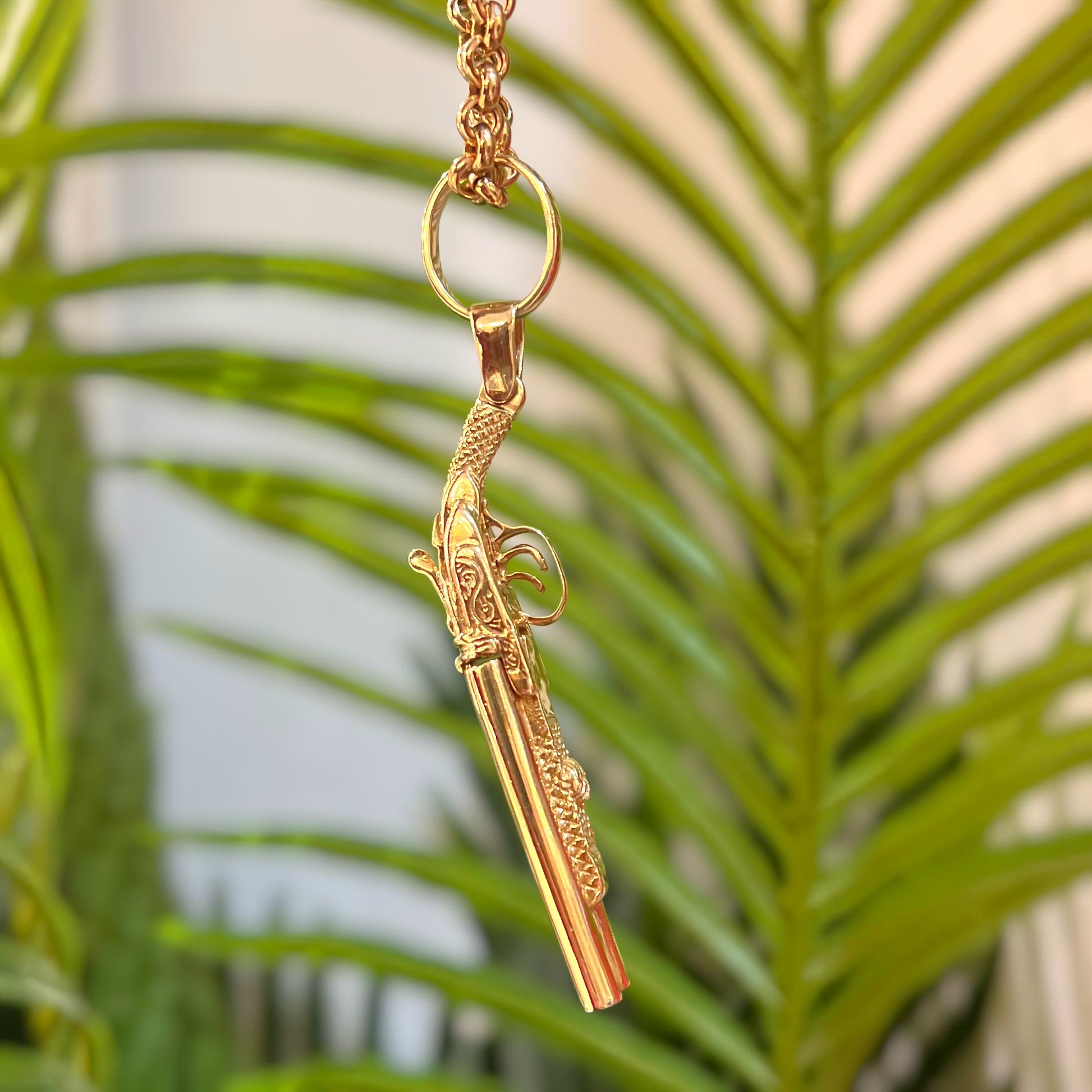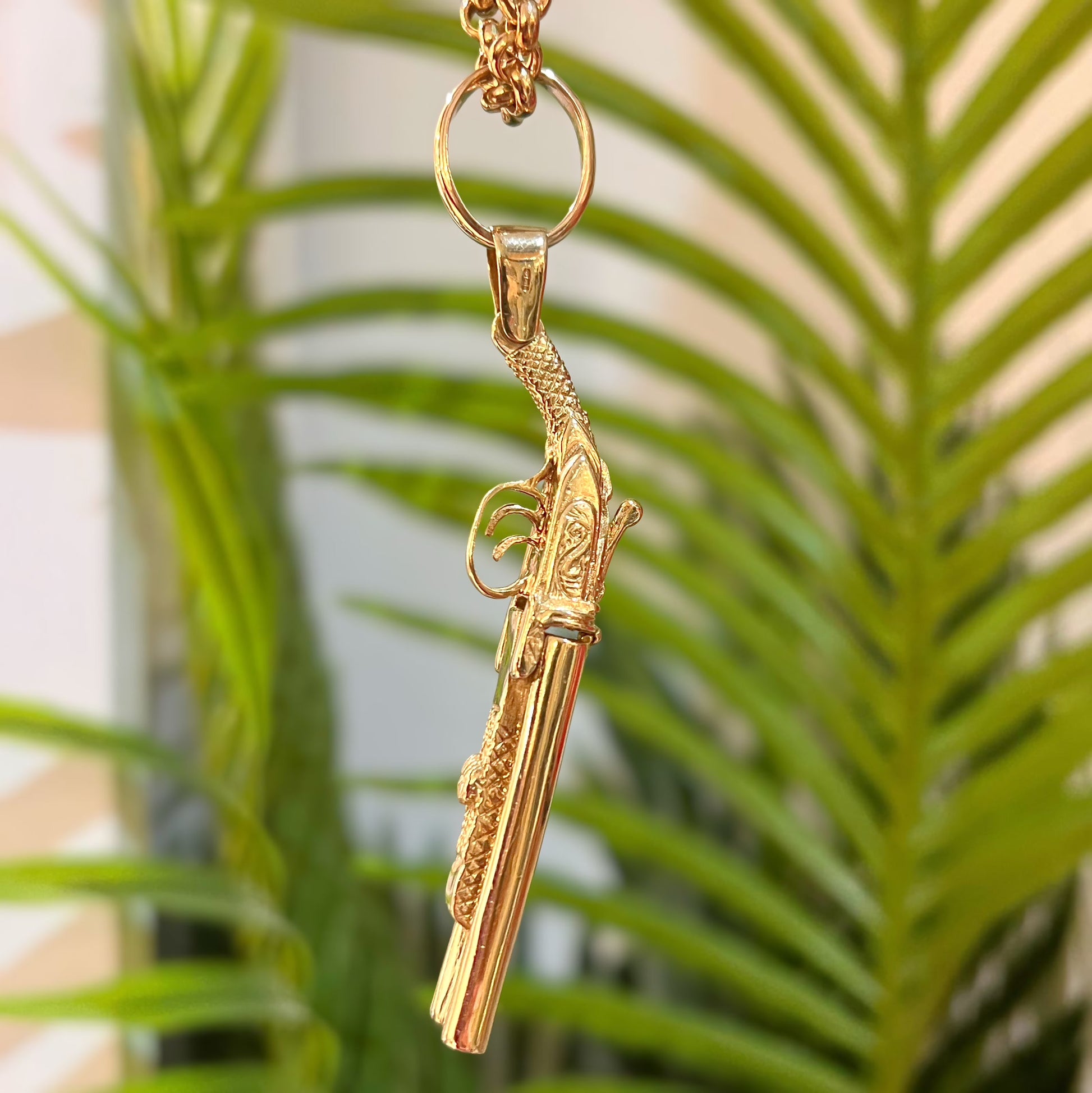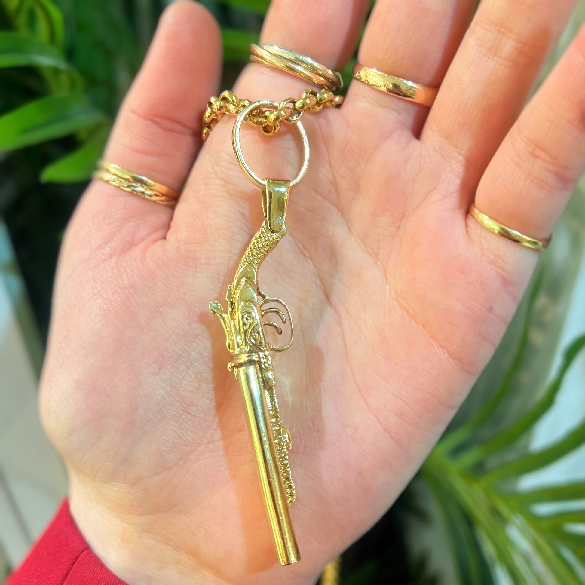 RARE Vintage Solid 9ct Yellow Gold Sawn-off Shotgun Pendant