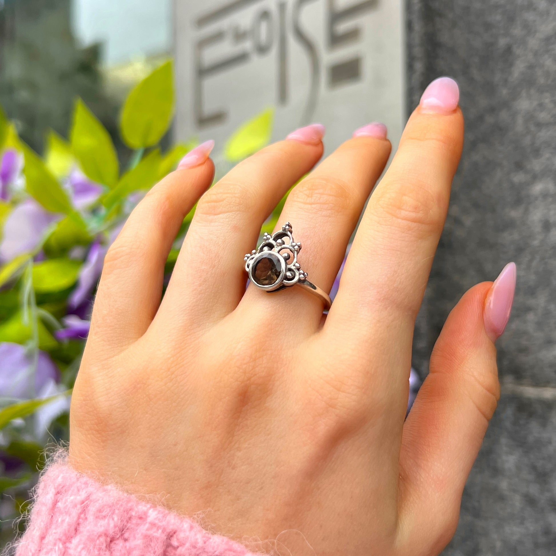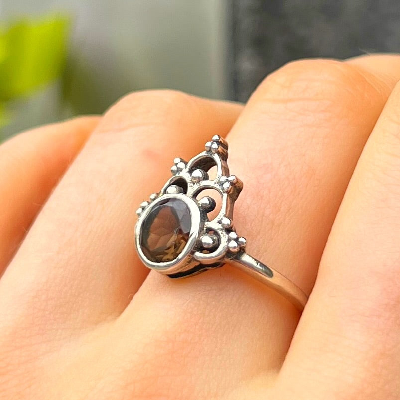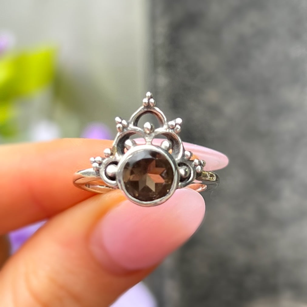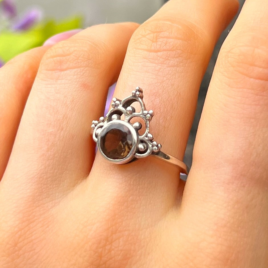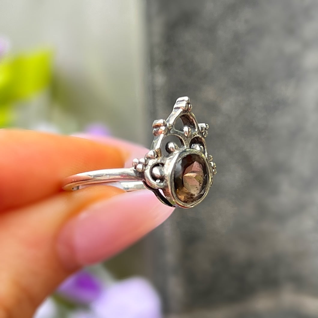 Sterling Silver Boho Smoky Topaz Ring - size O