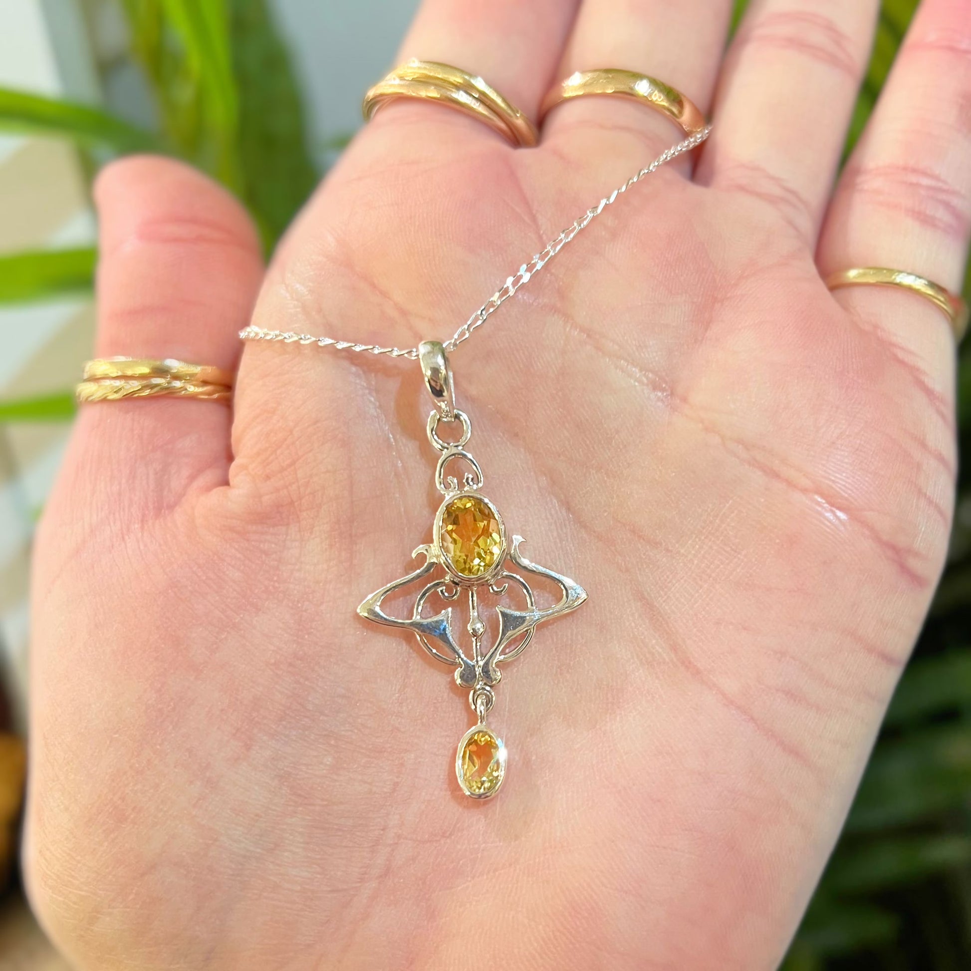 Sterling Silver Citrine Art Nouveau Inspired Necklace