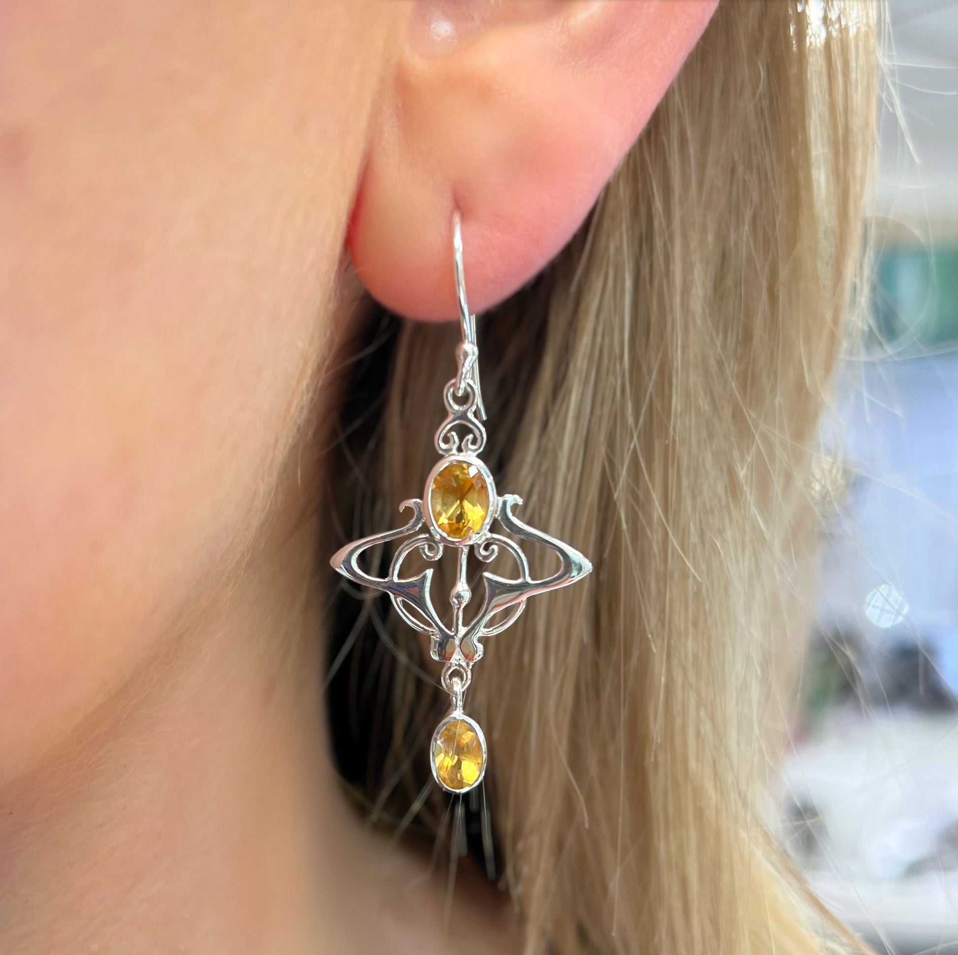 Sterling Silver Citrine Art Nouveau-Inspired Earrings