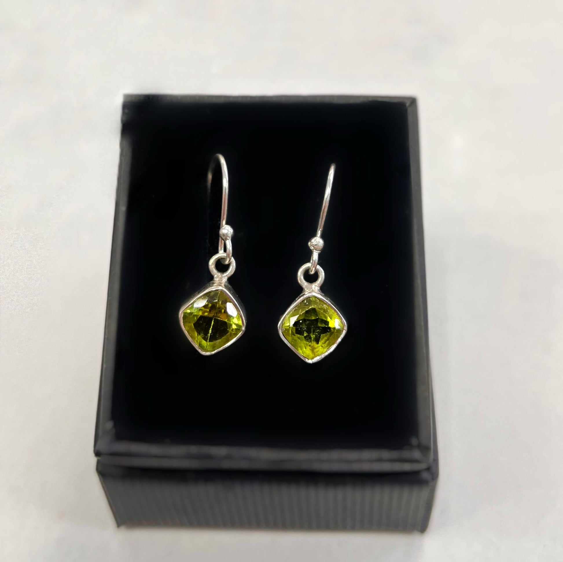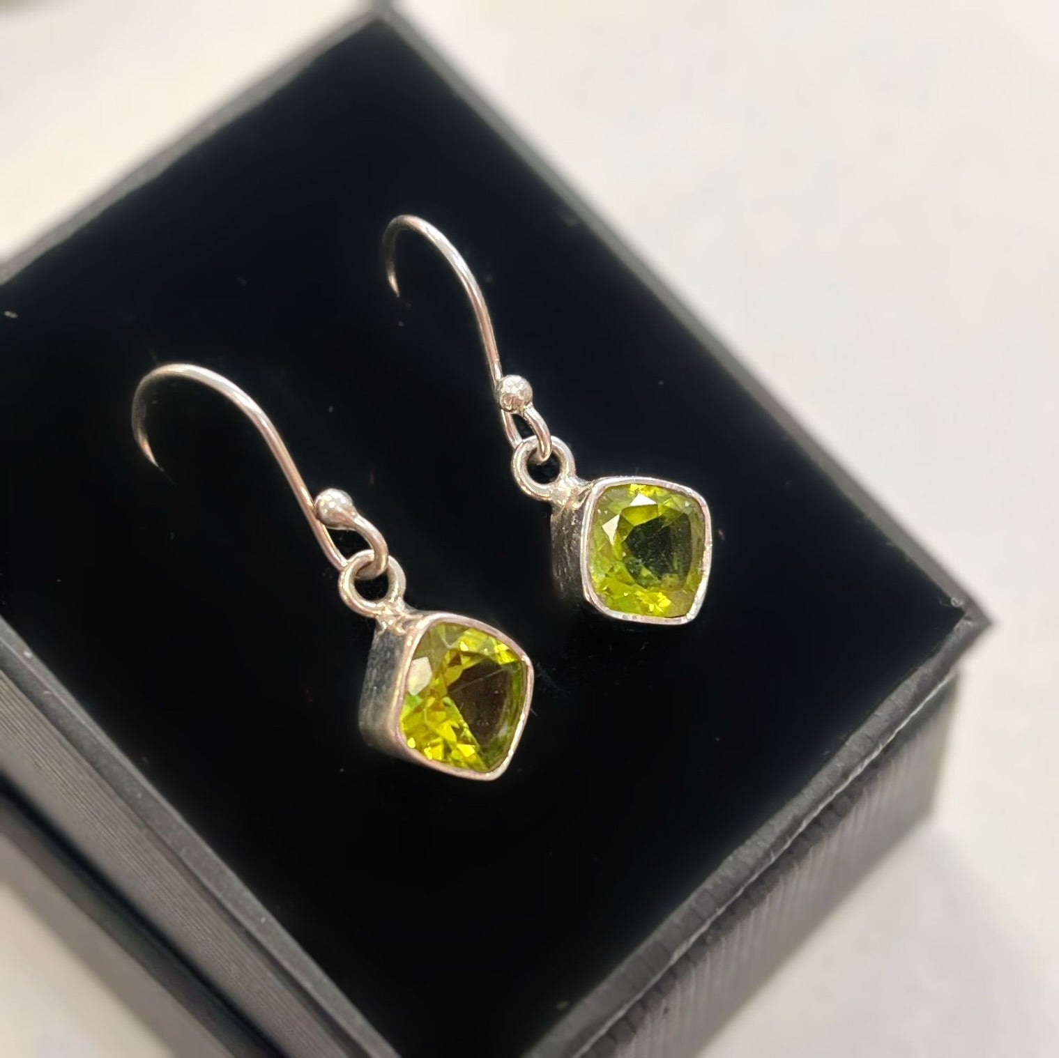 Sterling SIlver Cushion Cut Peridot Drop Earrings