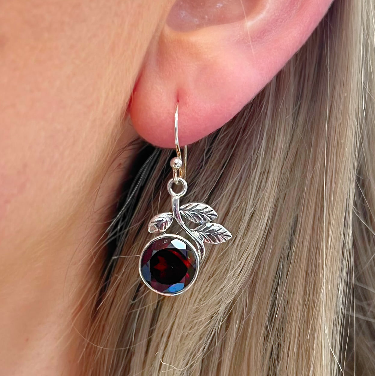 Sterling Silver Nature-Inspired Garnet Drop Earrings