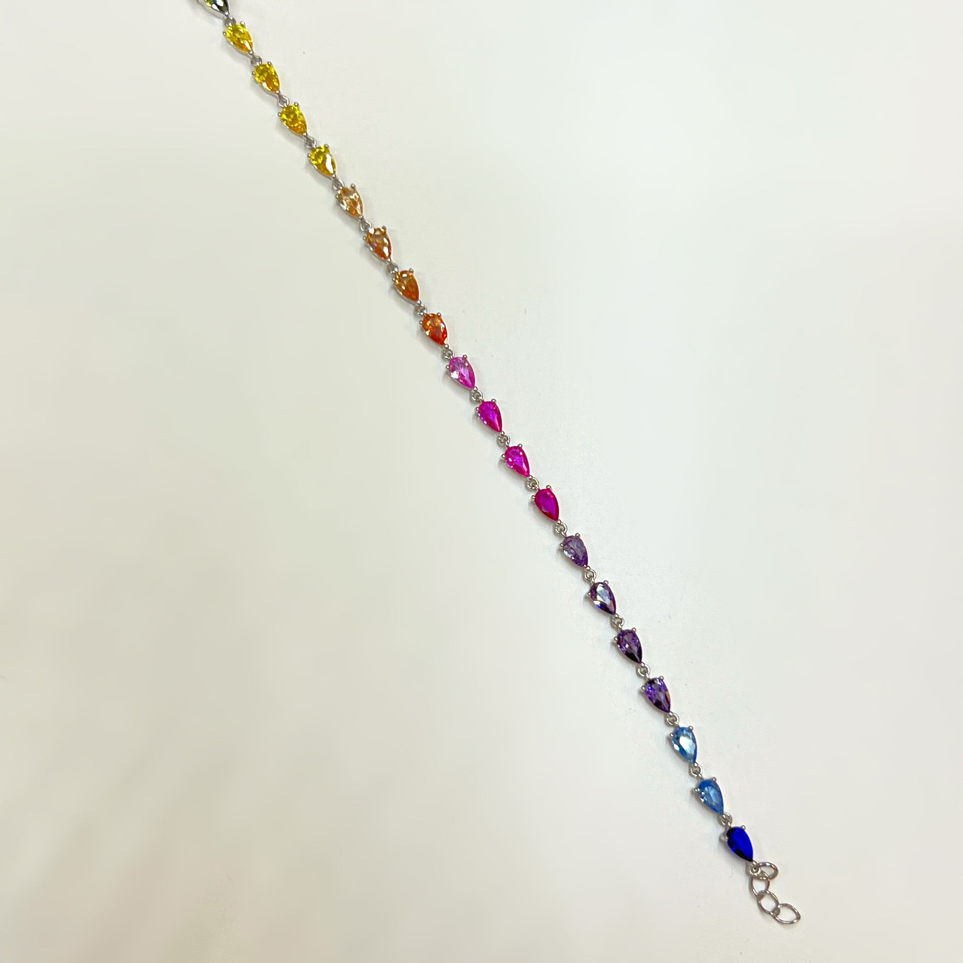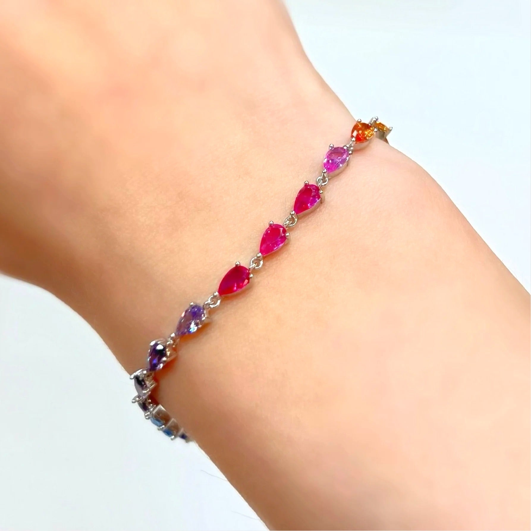Sterling Silver Multicoloured Rainbow Cubic Zirconia Tennis Bracelet