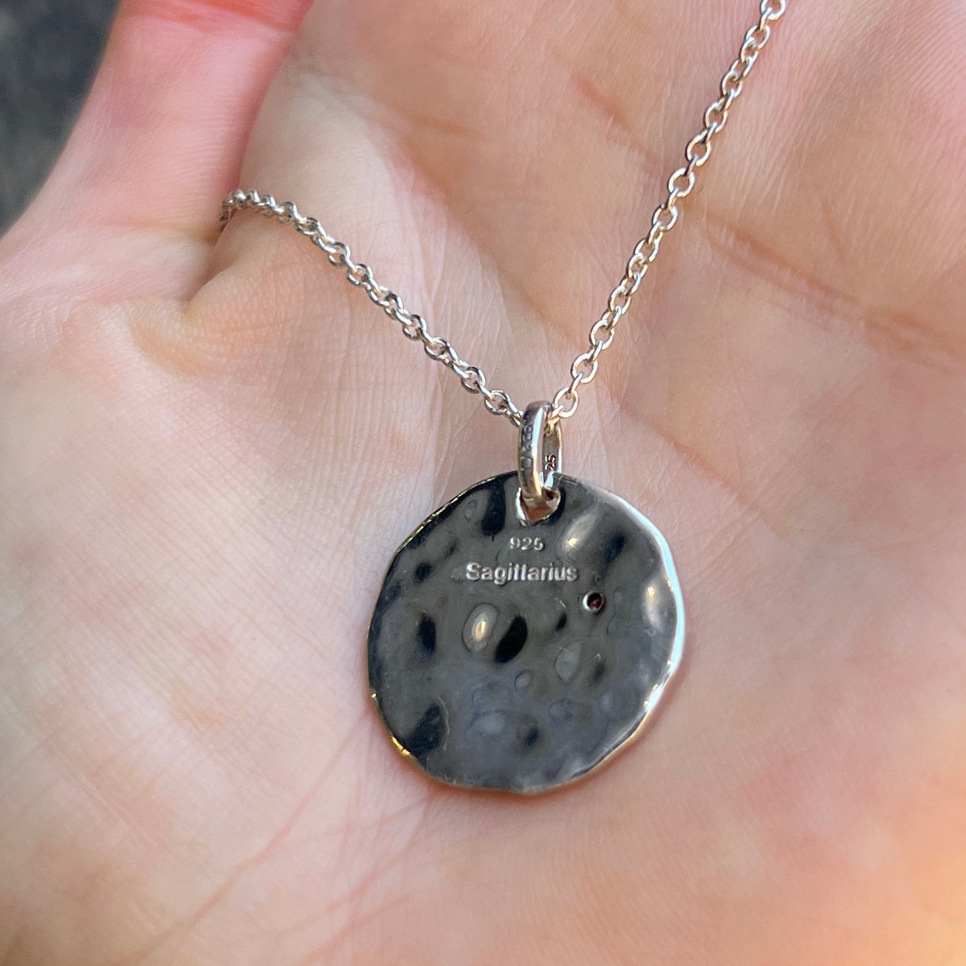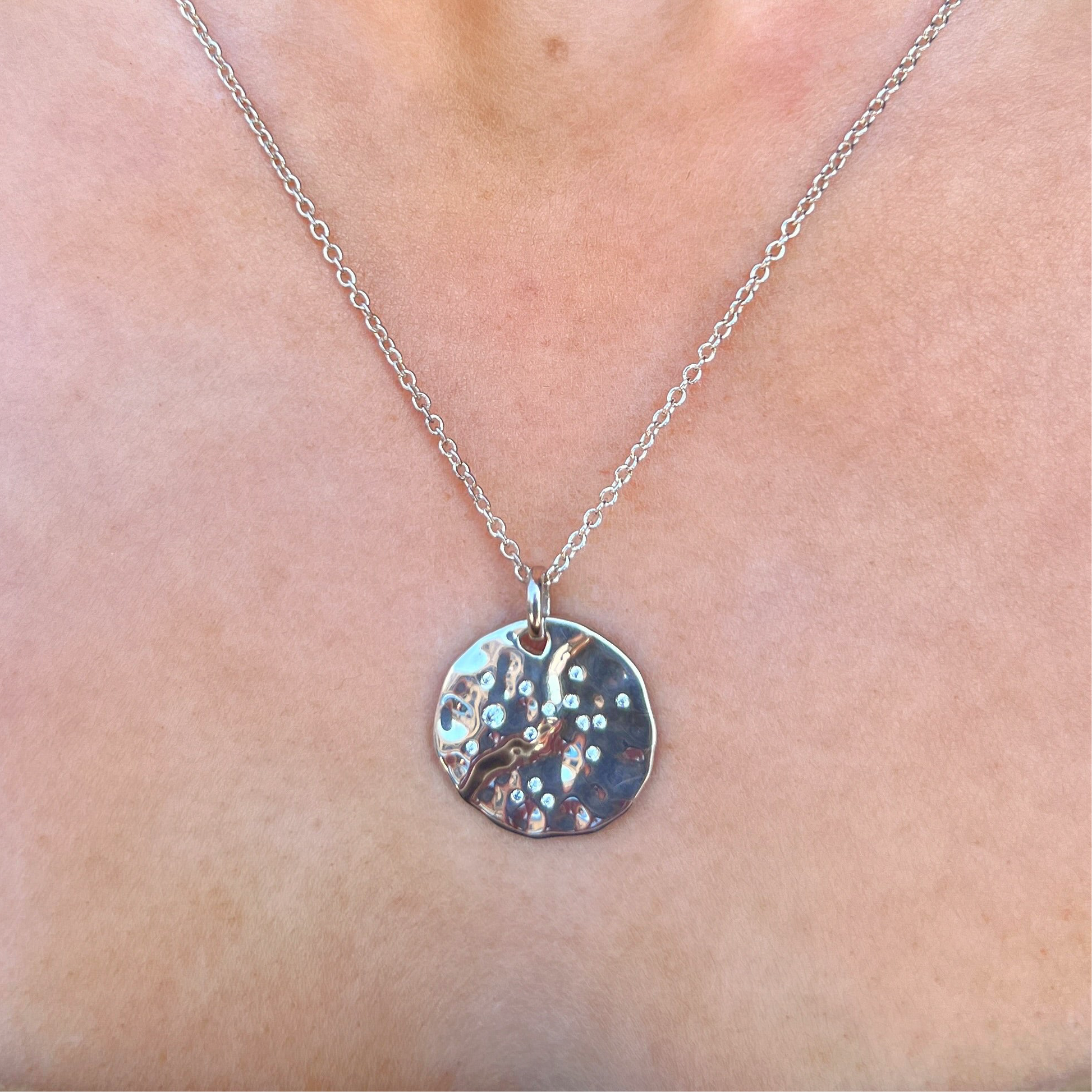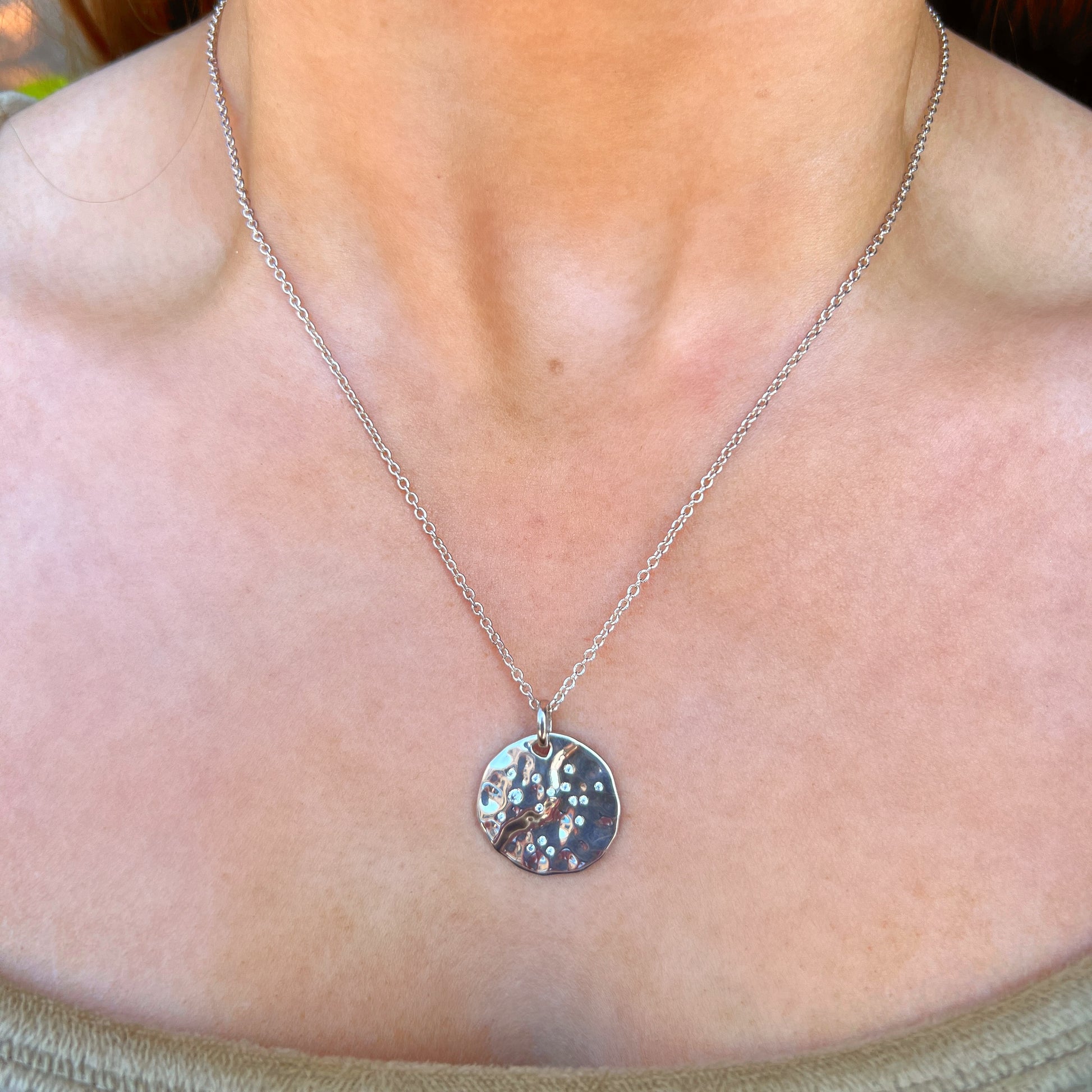This beautiful range of jewellery is the perfect birthday present for your loved ones. Each necklace features a modern, hammered textured, pendant and the constellation of your special person's star sign mapped out with sparkling Cubic Zirconia gemstones.