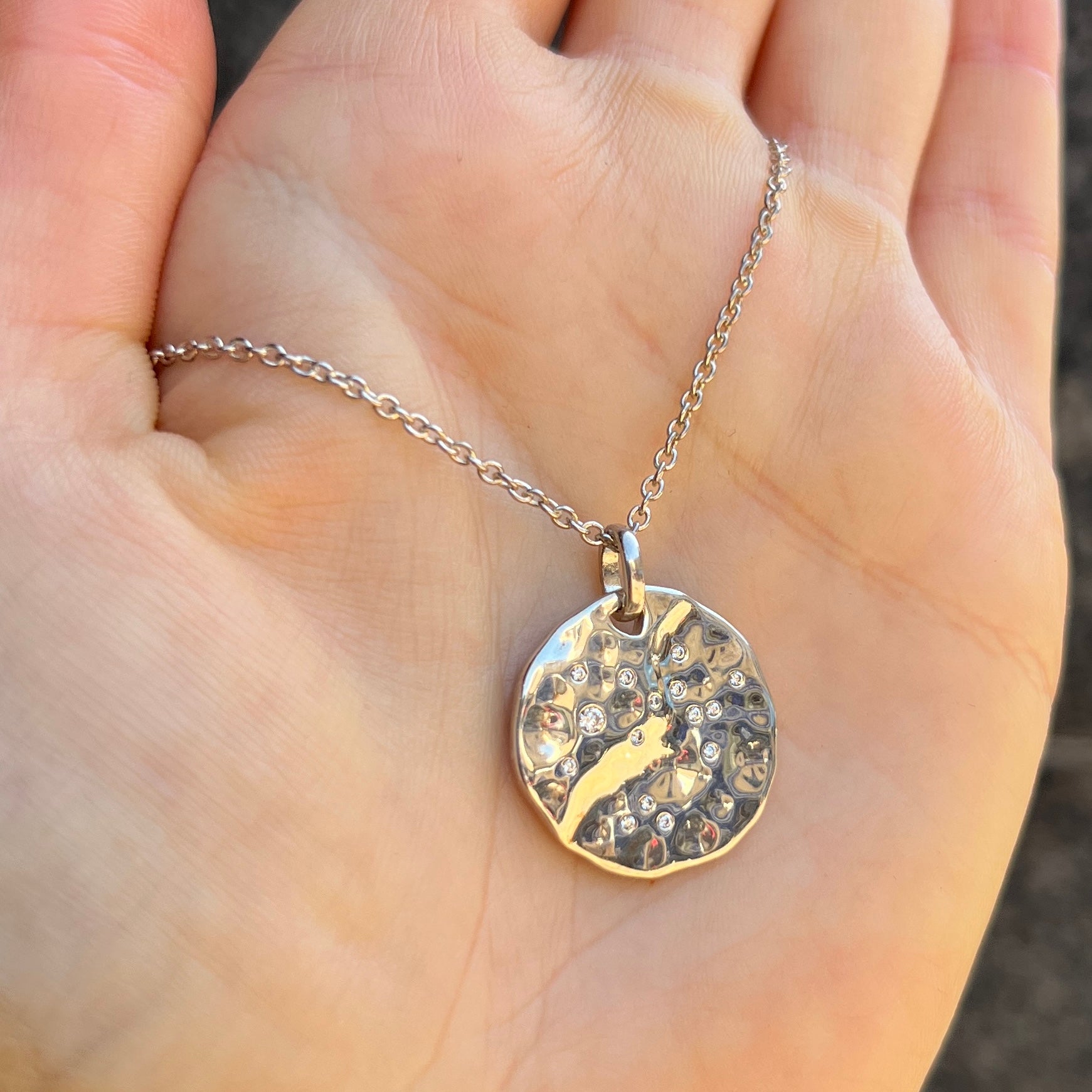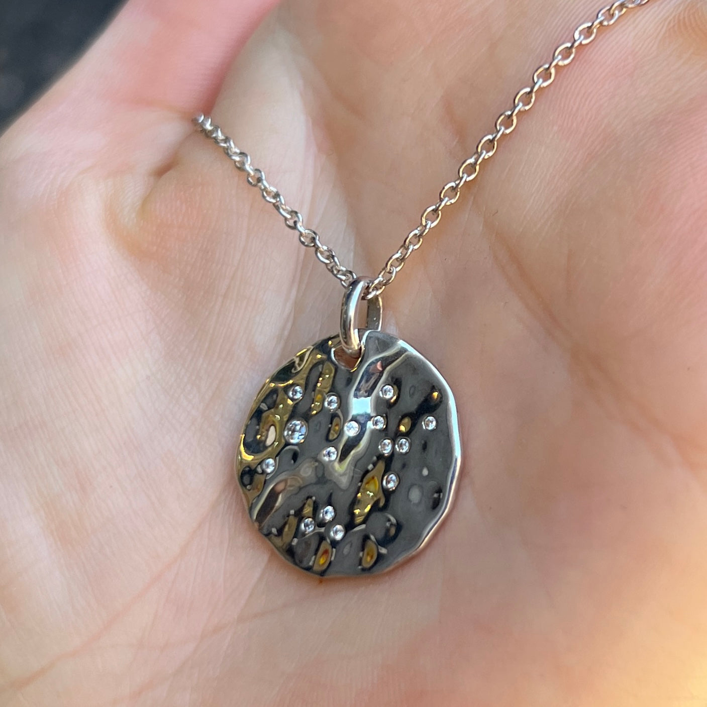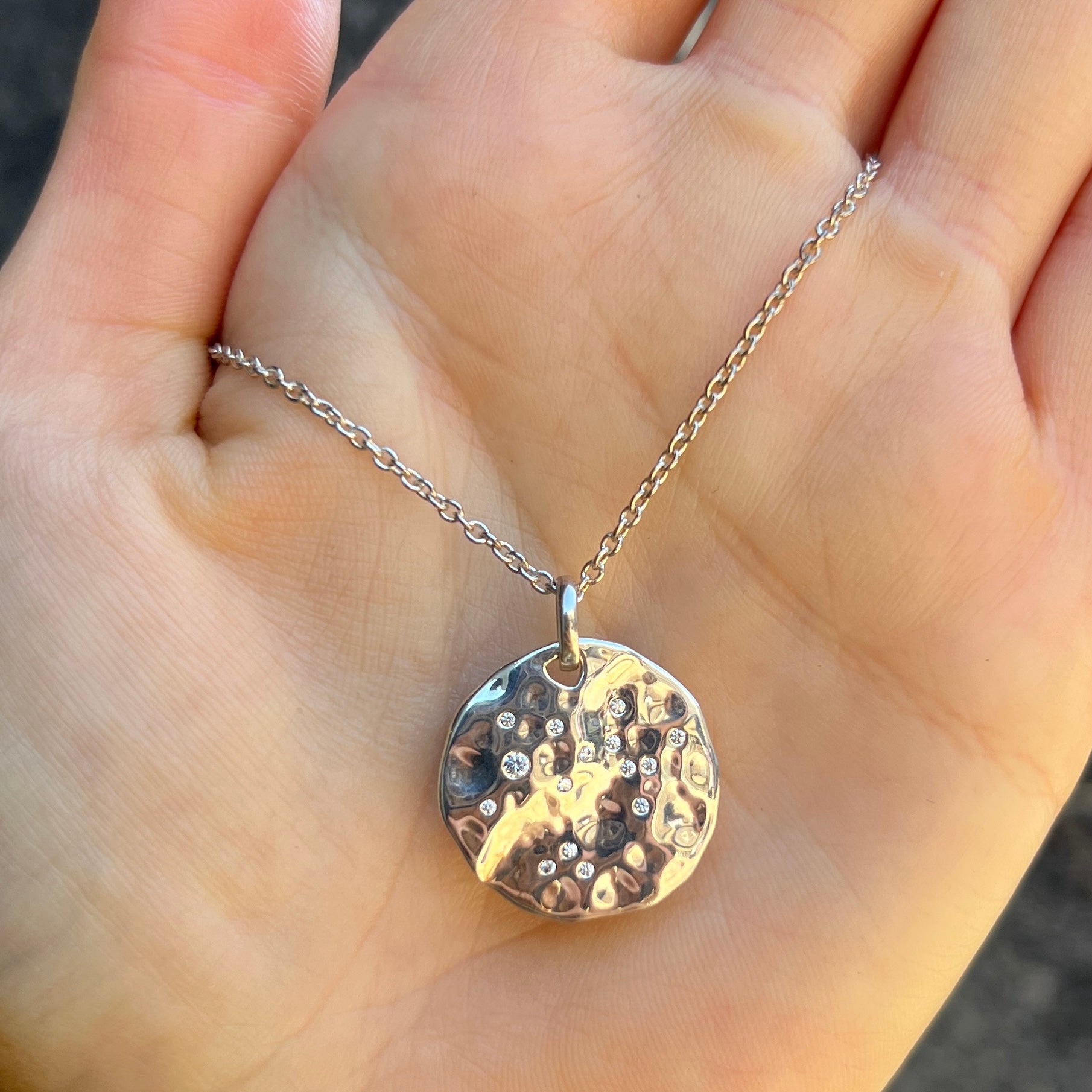 This beautiful range of jewellery is the perfect birthday present for your loved ones. Each necklace features a modern, hammered textured, pendant and the constellation of your special person's star sign mapped out with sparkling Cubic Zirconia gemstones.