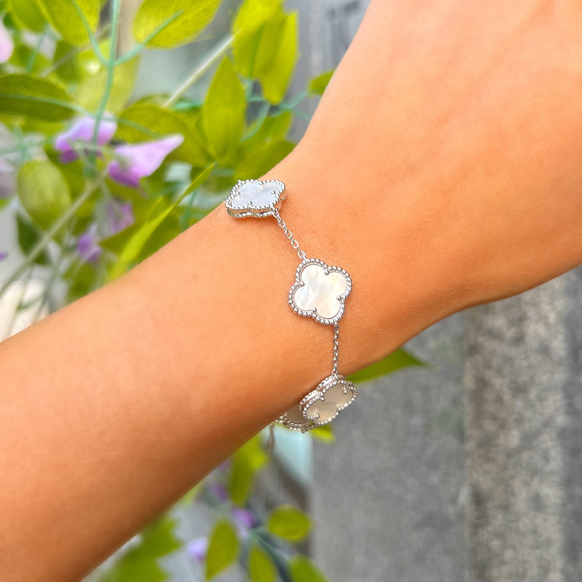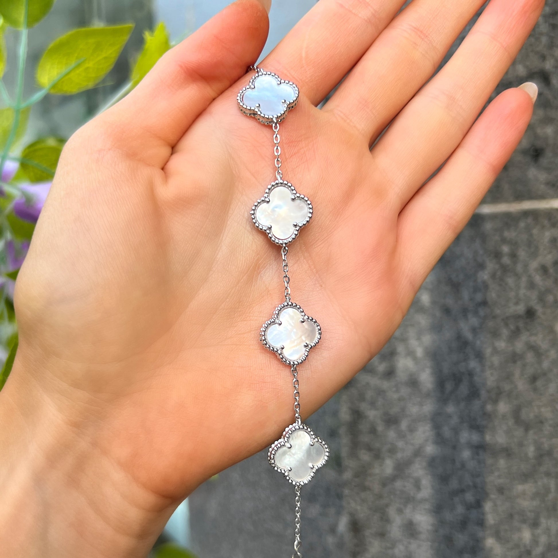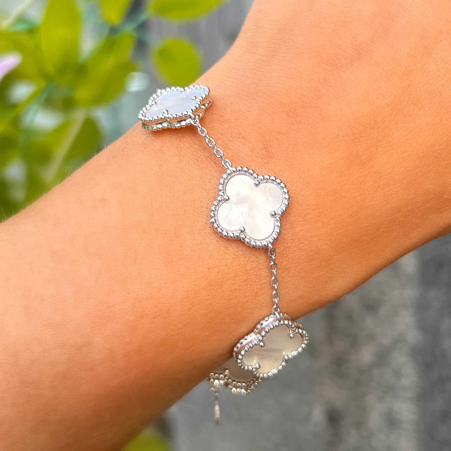 Sterling Silver White Mother of Pearl Clover Bracelet