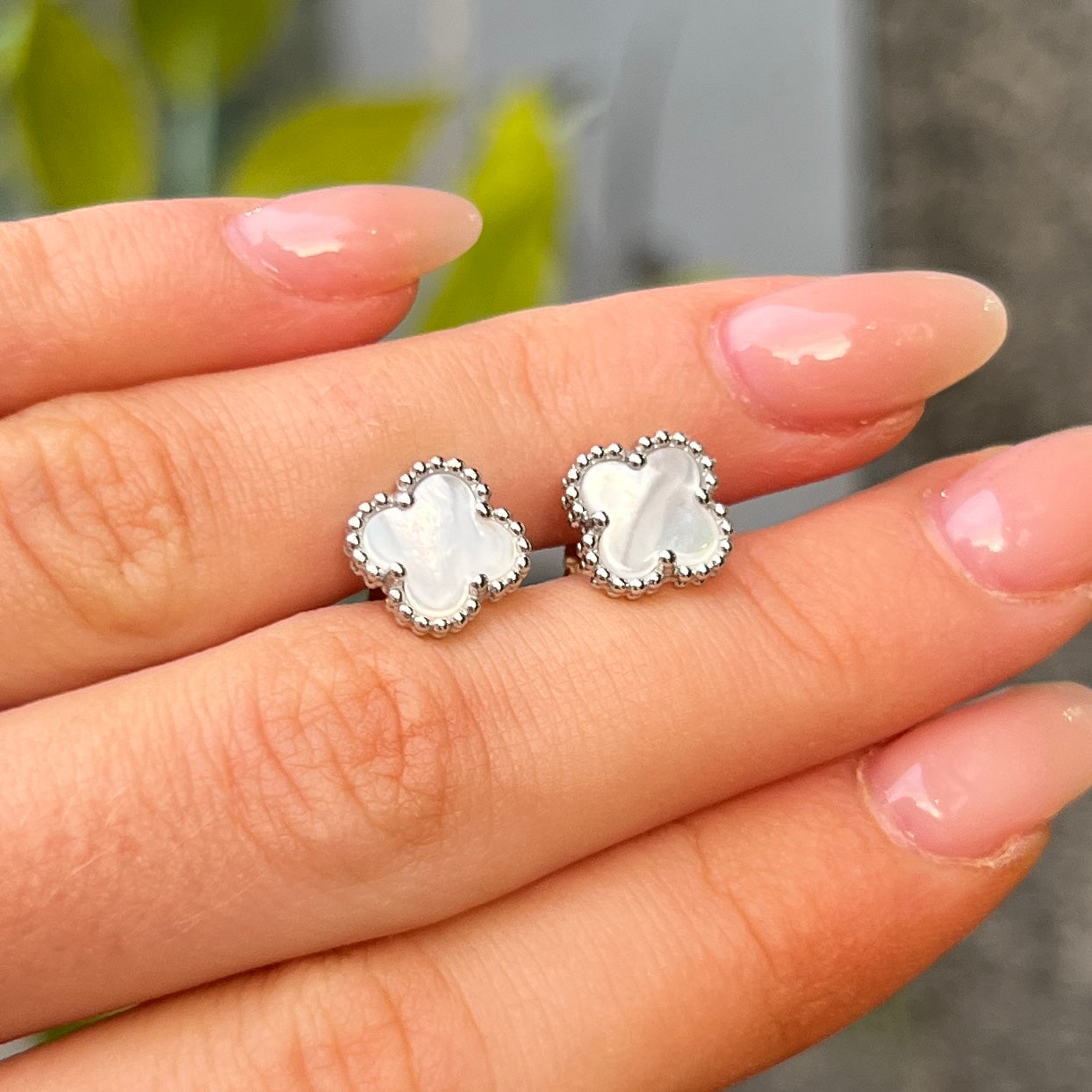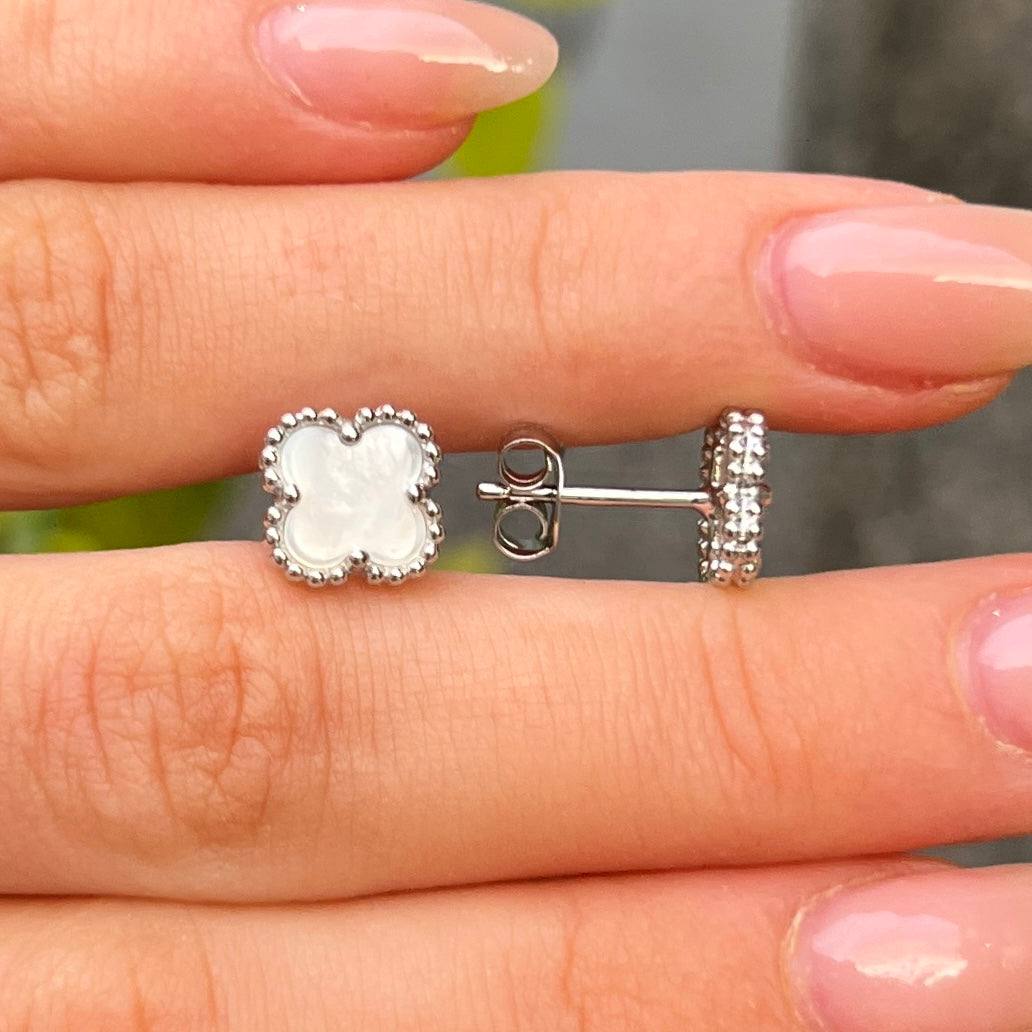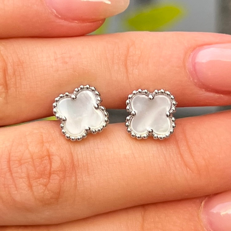 Sterling Silver White Mother of Pearl Clover Stud Earrings