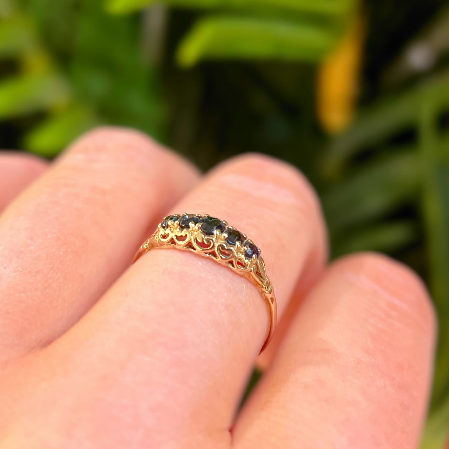 Vintage 9ct Yellow Gold Edwardian Inspired 5 Stone Sapphire Ring - Size Q